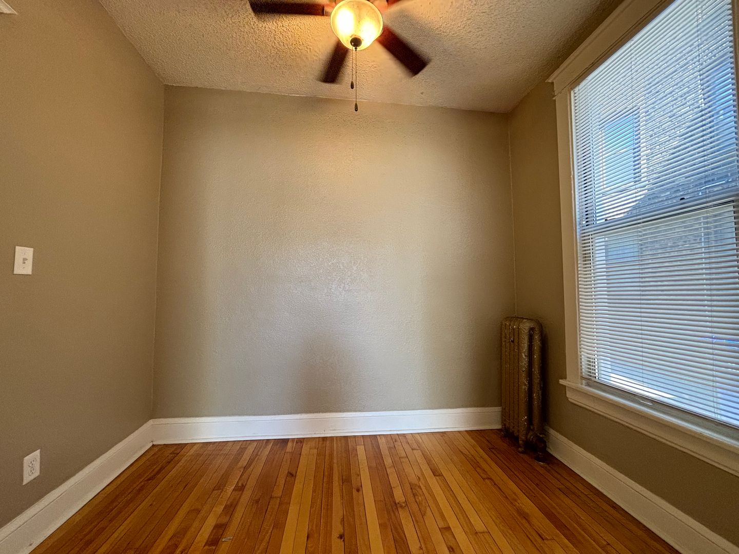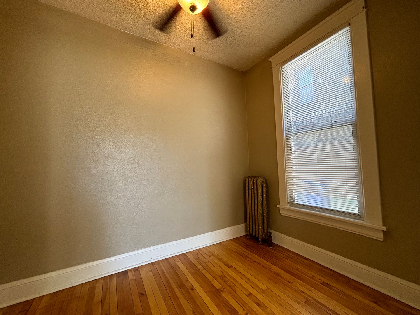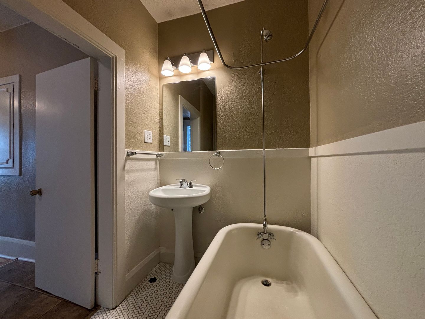 This studio + Den apartment is cozy and beautiful! It has a sizeable living room with large windows, a compact bedroom that comes with great closet space, and access to the bathroom and its claw-foot tub.