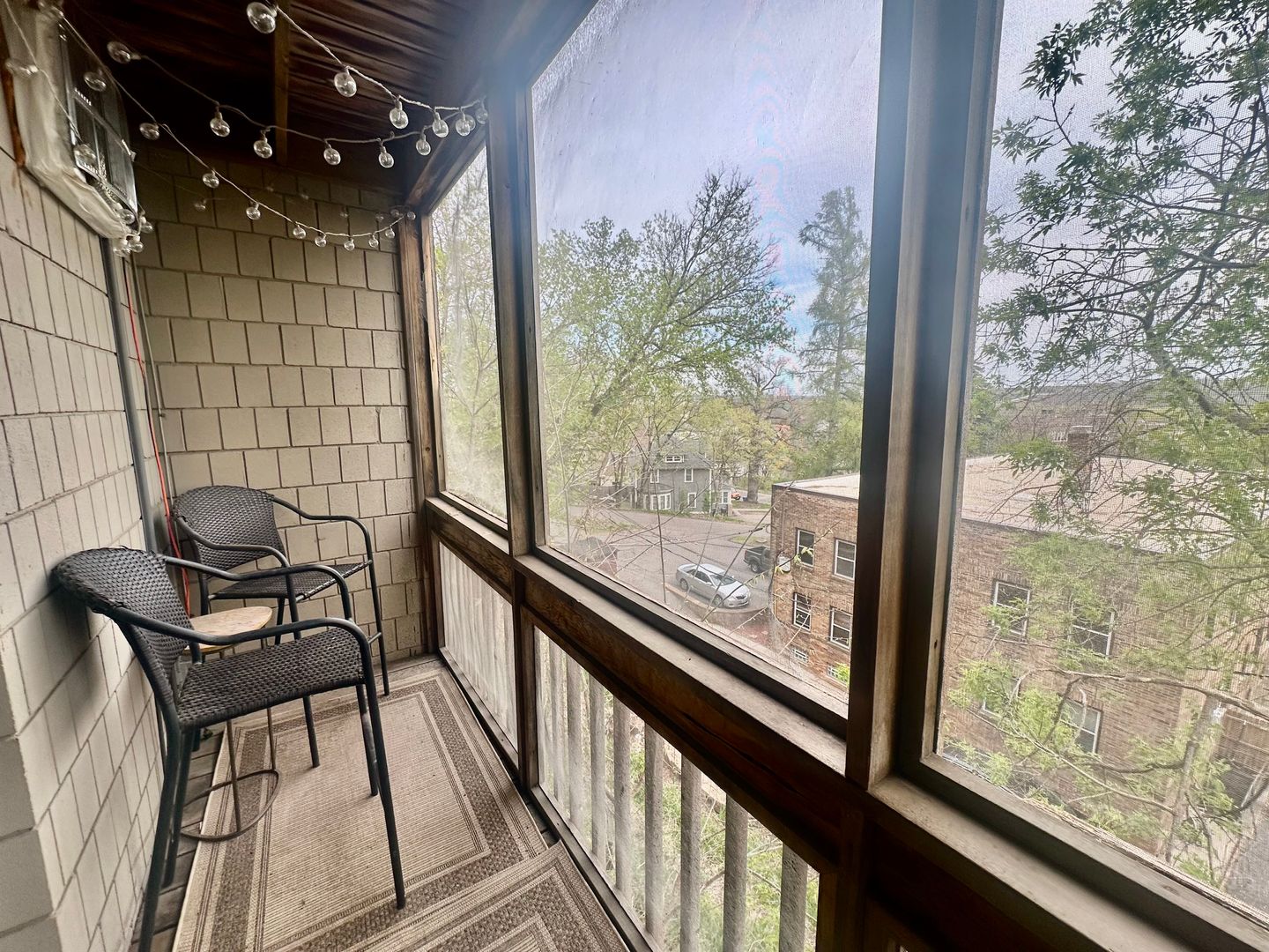 -Private screened-in porch with city views