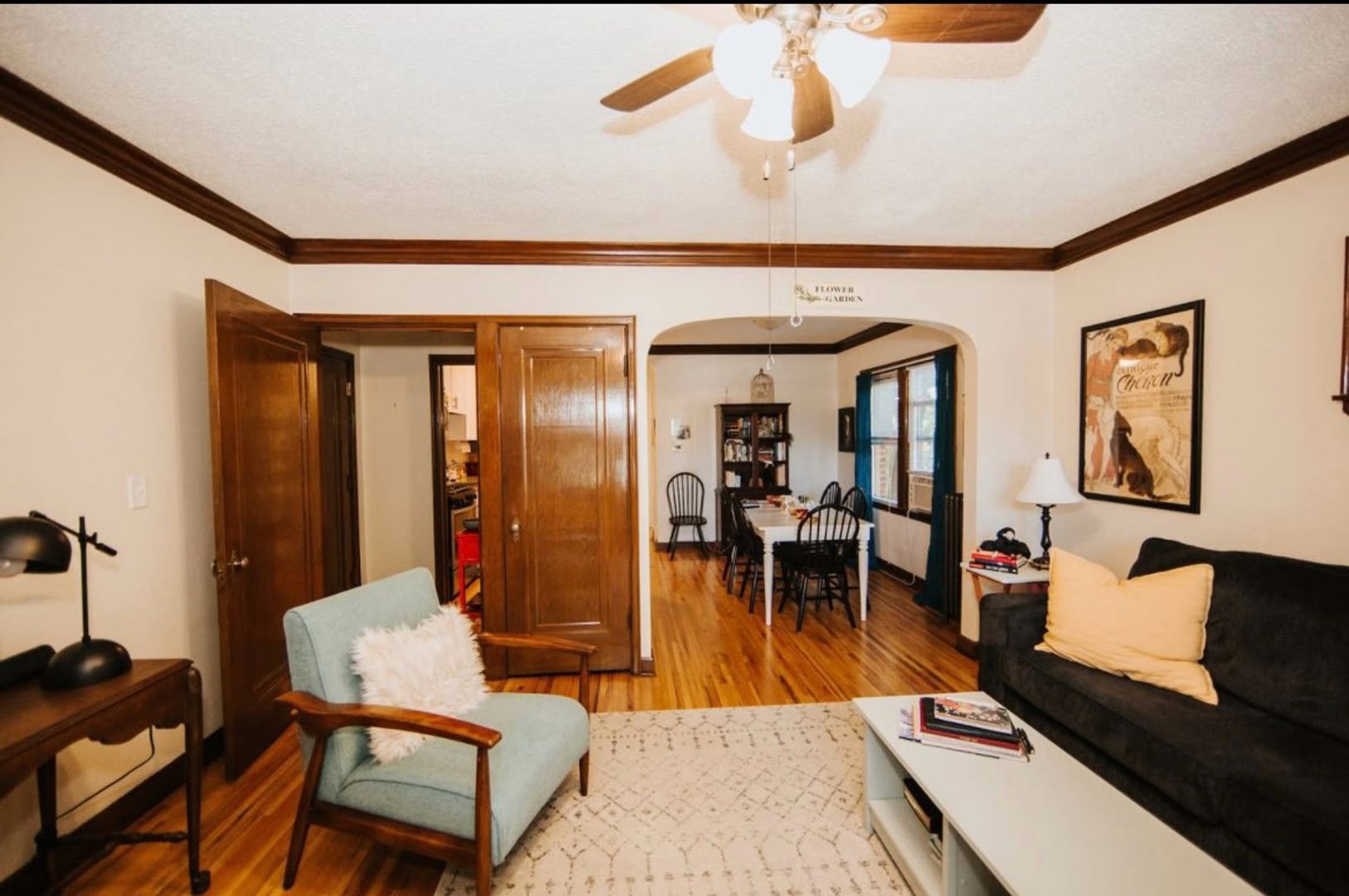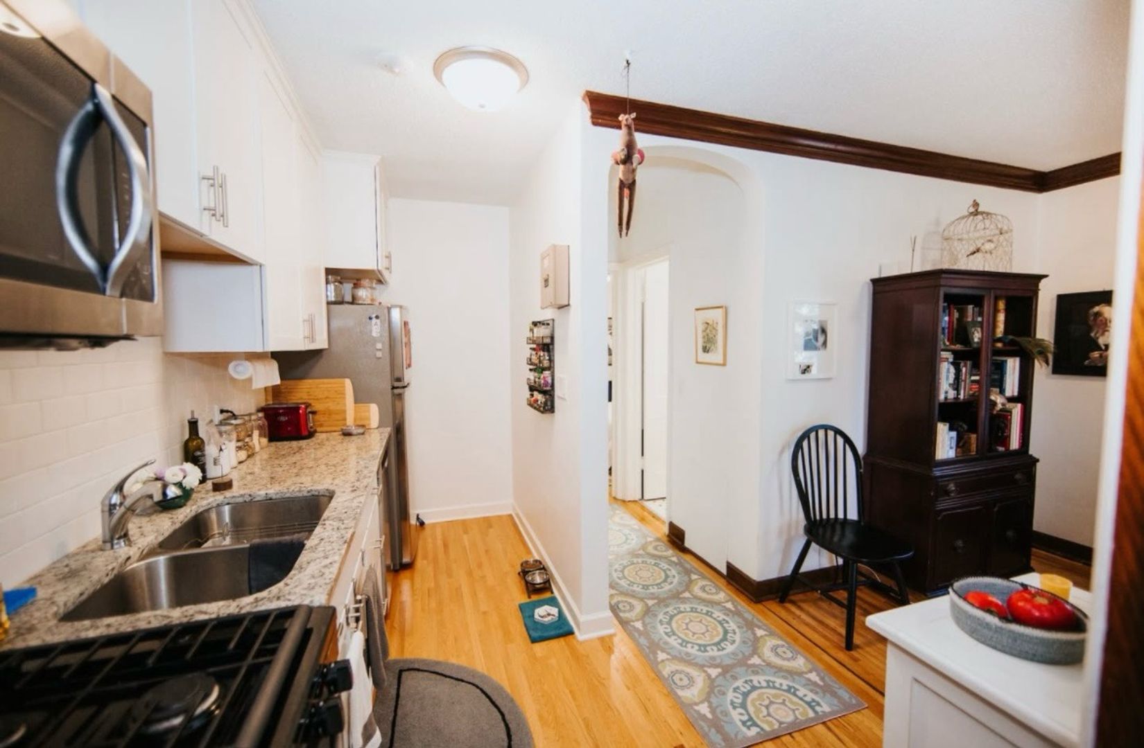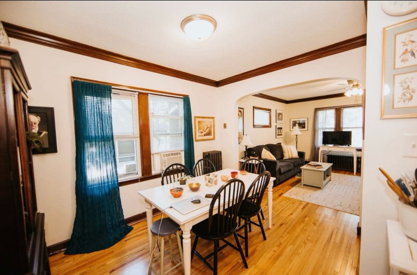 This apartment features lovely hardwood floors, natural woodwork, and plenty of sunshine!