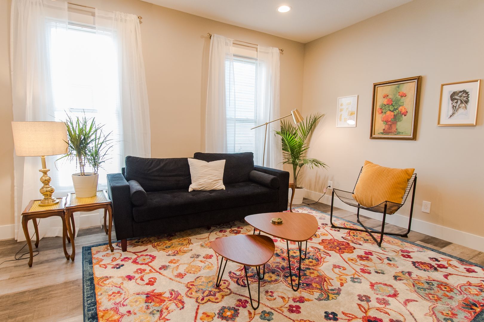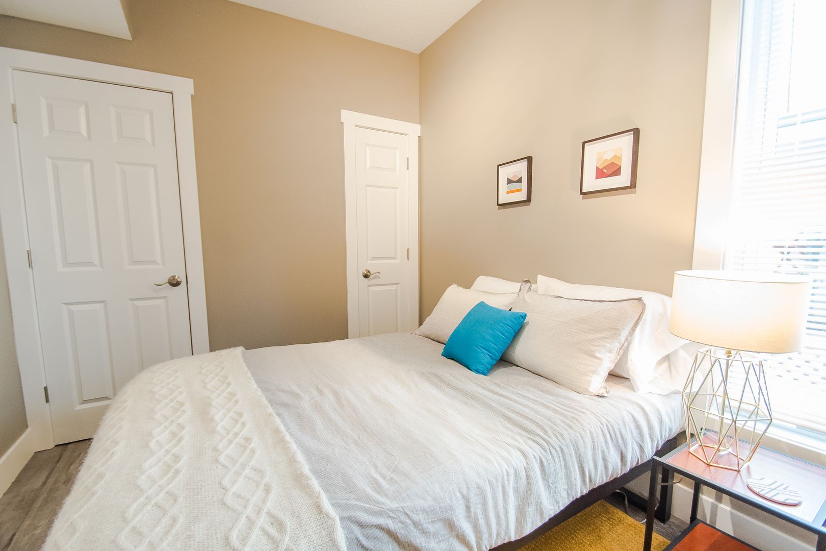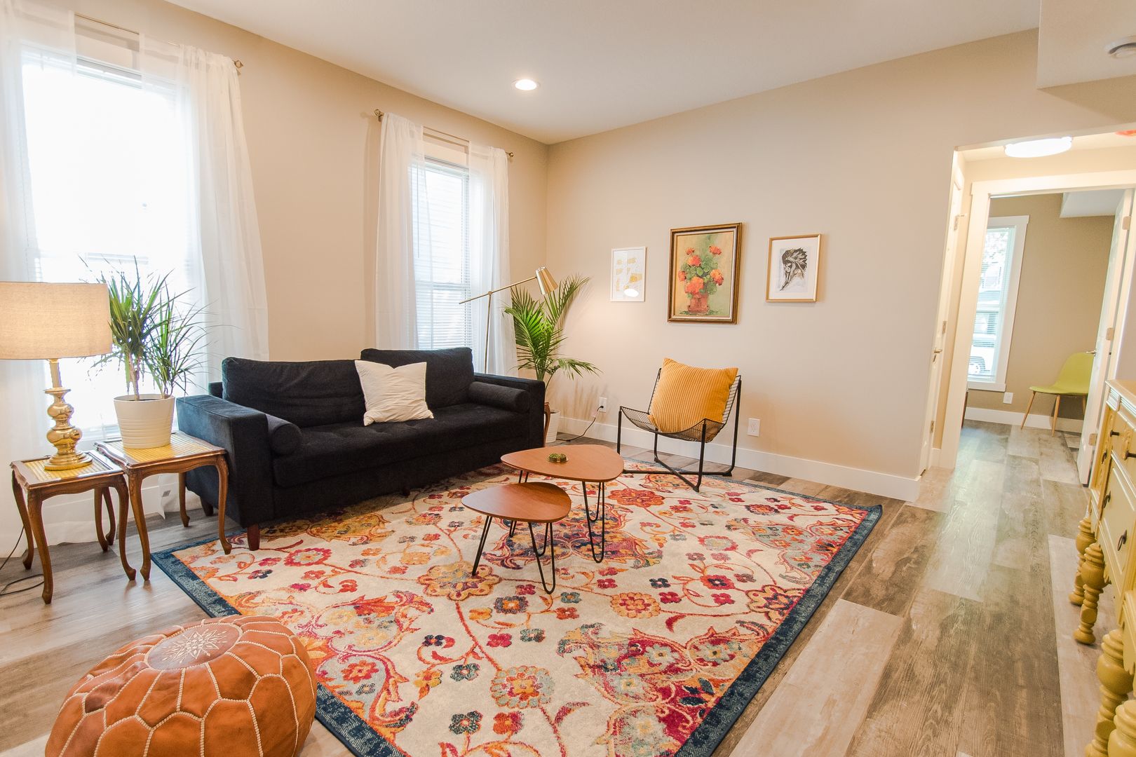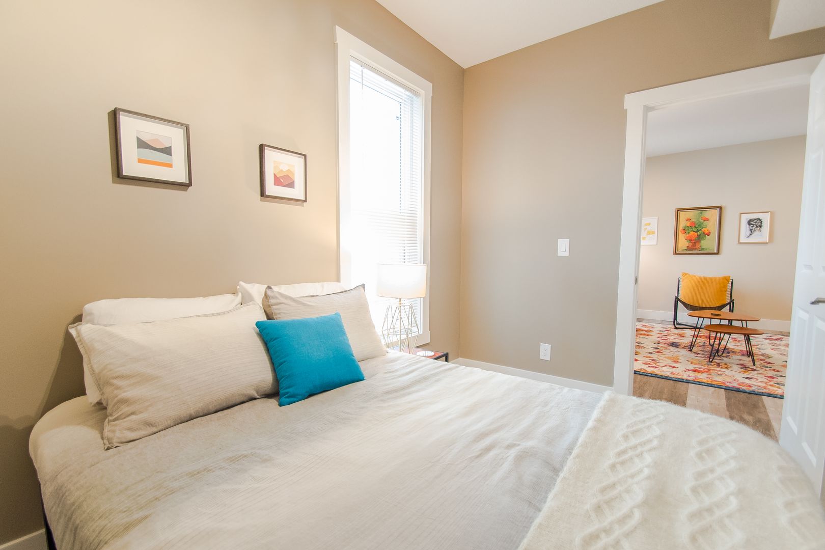 As part of a 4-Plex, this former Airbnb unit looks and feels like a luxury hotel! The spacious living room is nestled between the two bedrooms, giving you privacy whether you are moving in with a roommate or with kids. Both bedrooms feature ceiling fans and high ceilings for your comfort. Also, lots of natural light flood the both the living room and bedrooms!