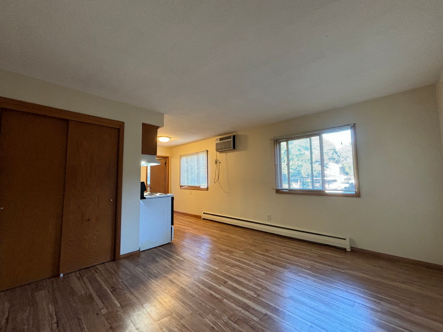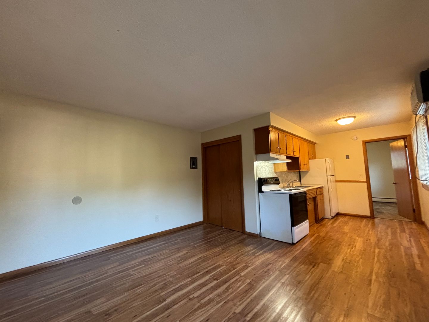 This 1 BR and Bath has spacious living room/bedroom & large dine in kitchen