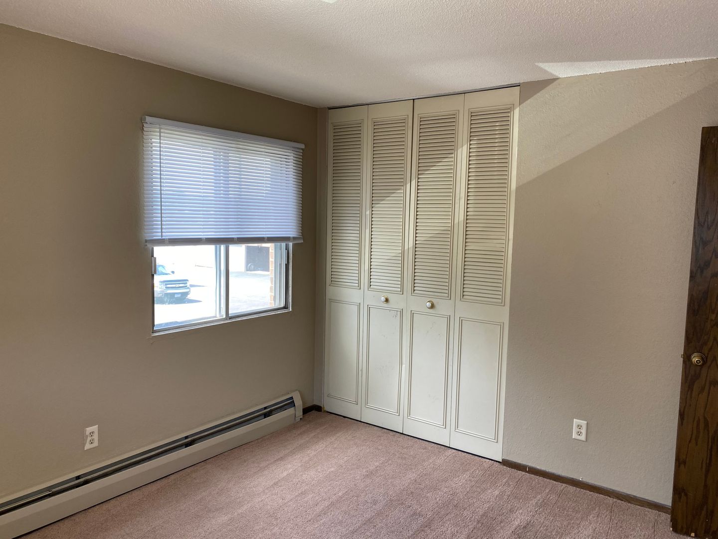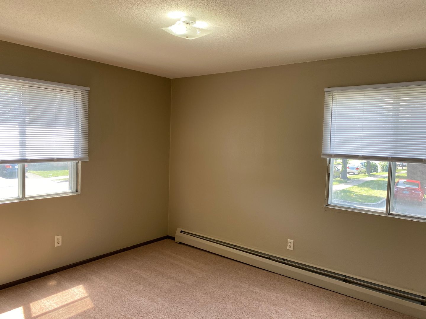 Large 2 bedroom corner unit with carpet in the living room and bedrooms. Galley kitchen with dining area. New carpet and new paint in unit. Secure building with laundry on site and off street parking included.