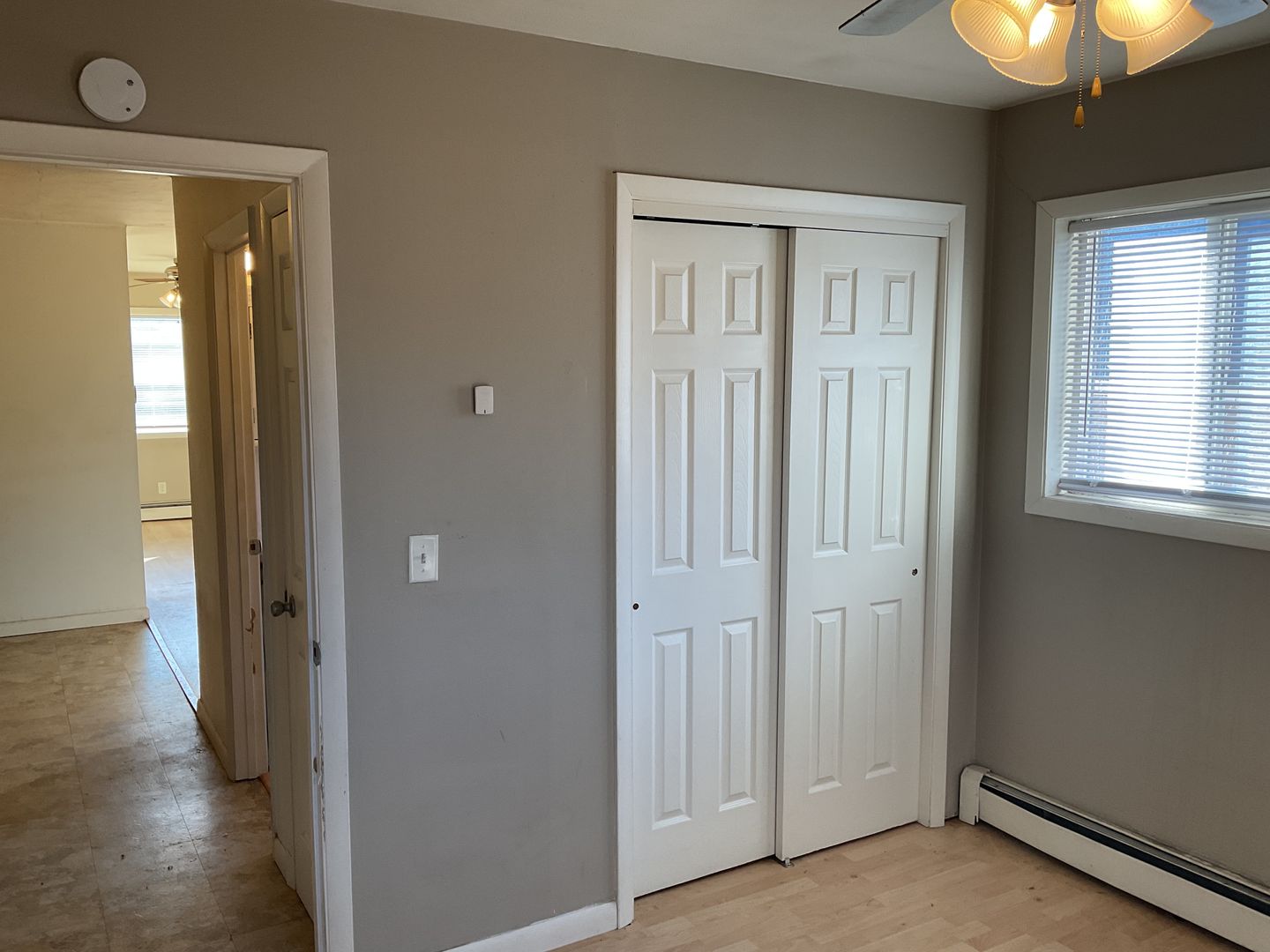 Just inside the door is a nice closet for jackets, shoes, etc. The living room is nicely sized and bright and sunny.