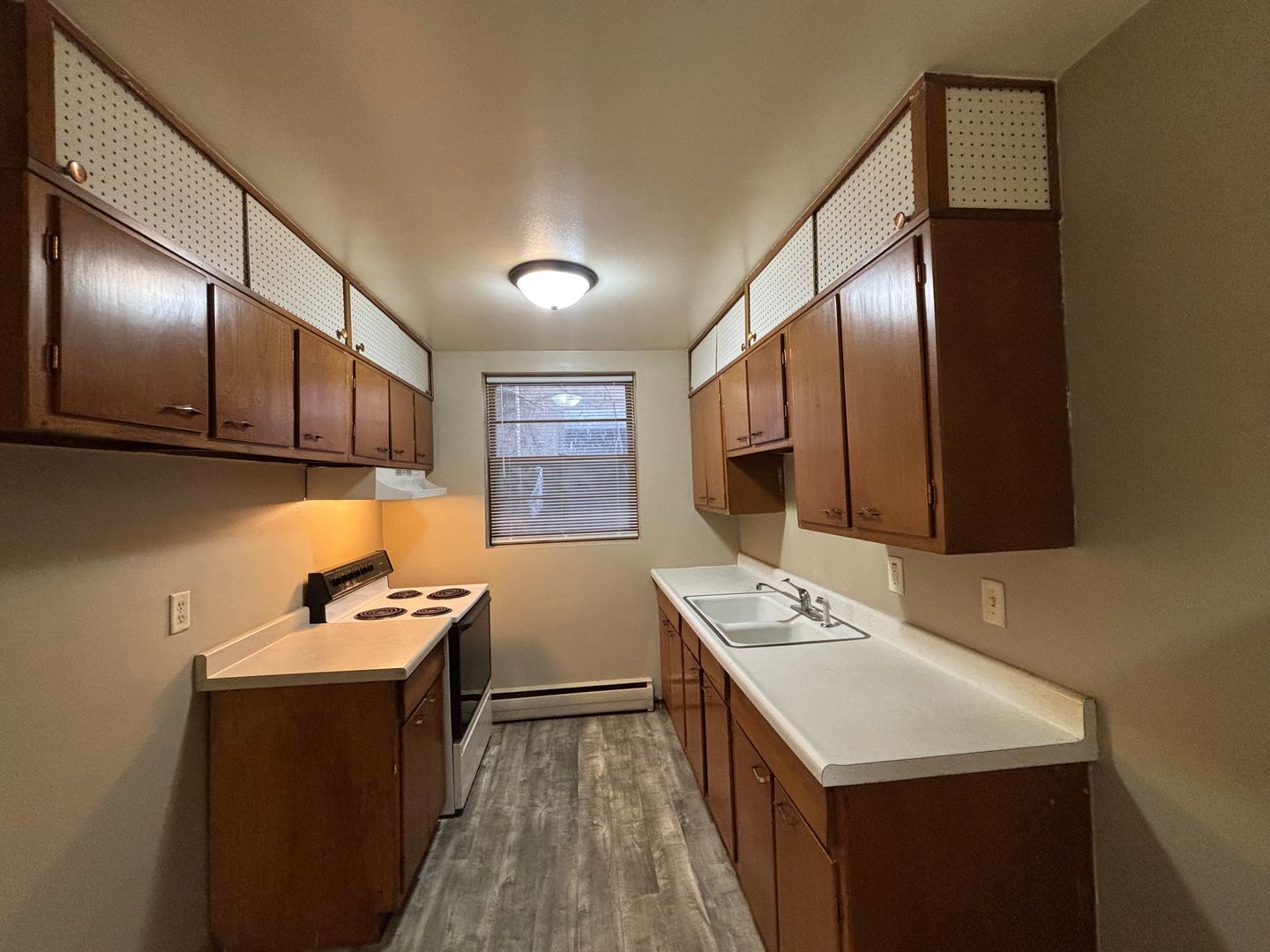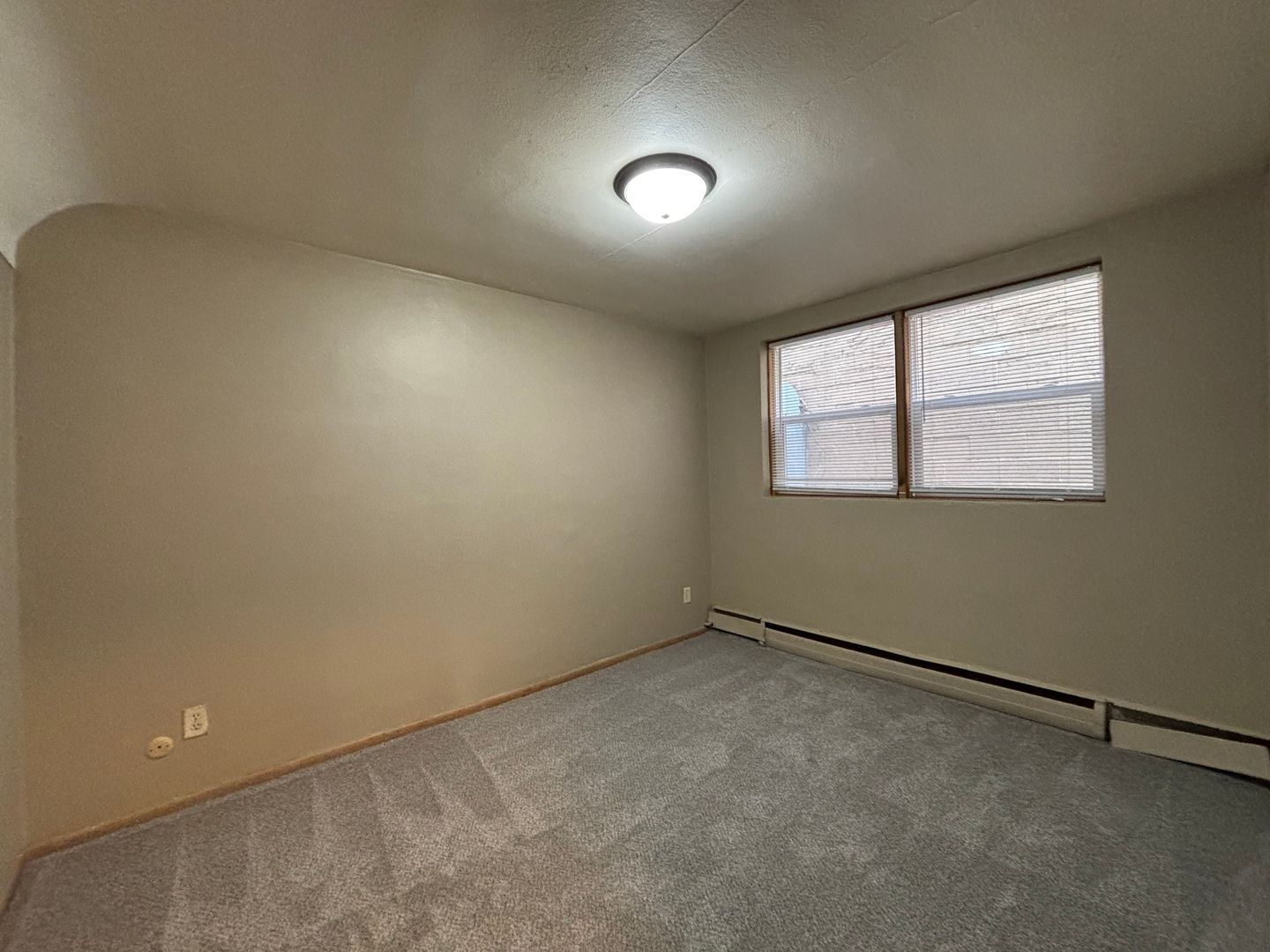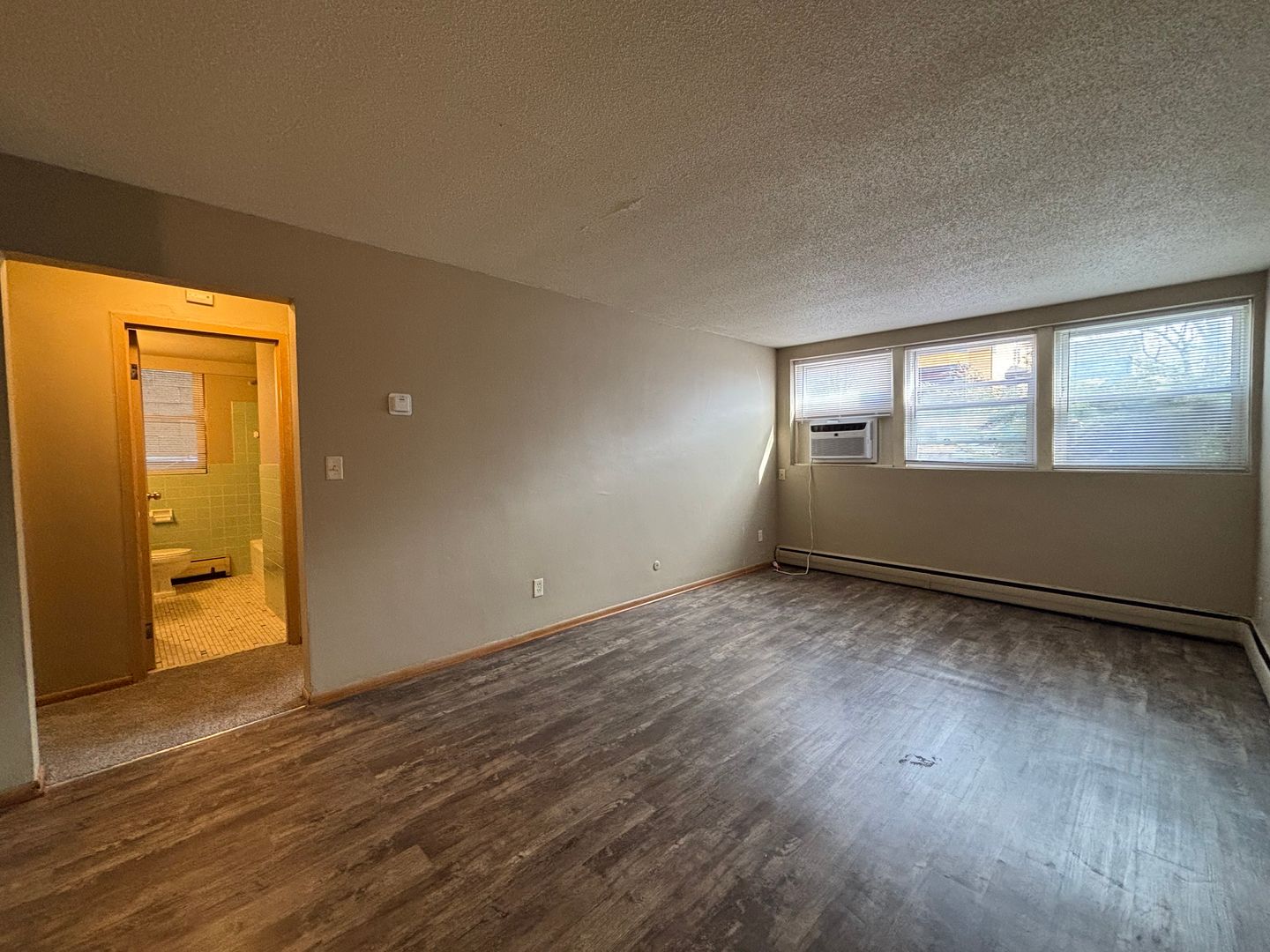 Large one bedroom unit located in Daytons Bluff neighborhood of Saint Paul. Hardwood floors in large living room, dining area, and bedroom. Galley style kitchen with electric stove and range. Plenty of closet space with wall AC included. Secure building with on site laundry and off street parking.