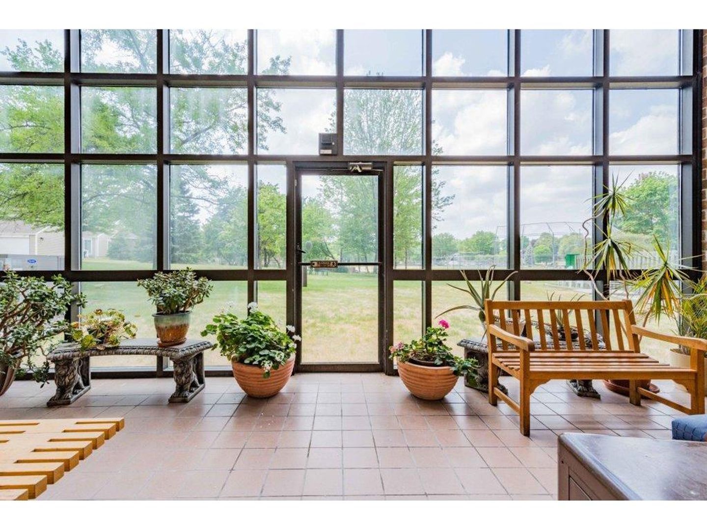 There are numerous onsite amenities, including a year-round greenery in the two-story sunroom w/balcony, an exercise room, sauna, library and several community spaces.