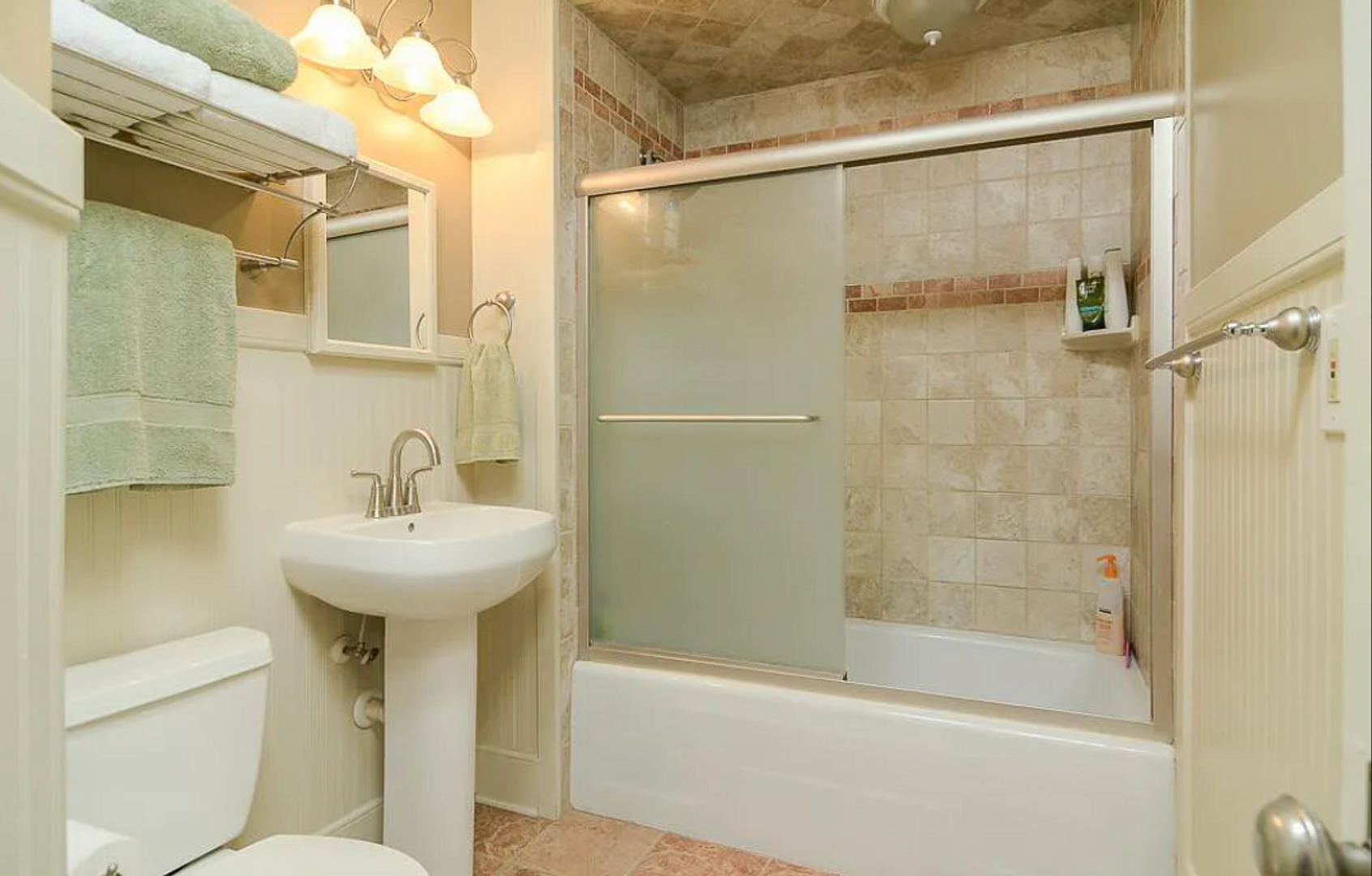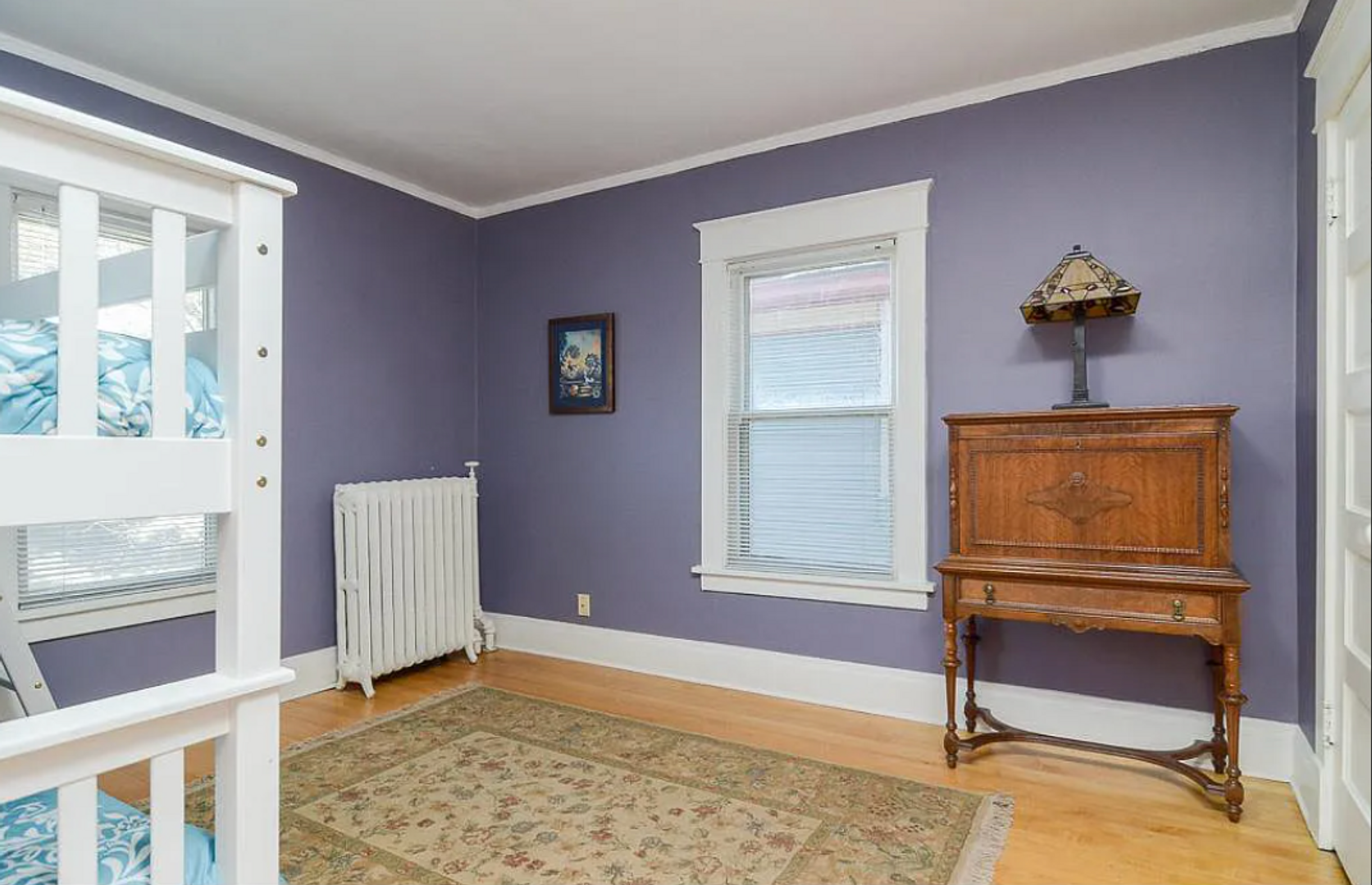 This home features a cozy four-season porch, spacious bedrooms, hardwood floors, and beautiful built-ins.
