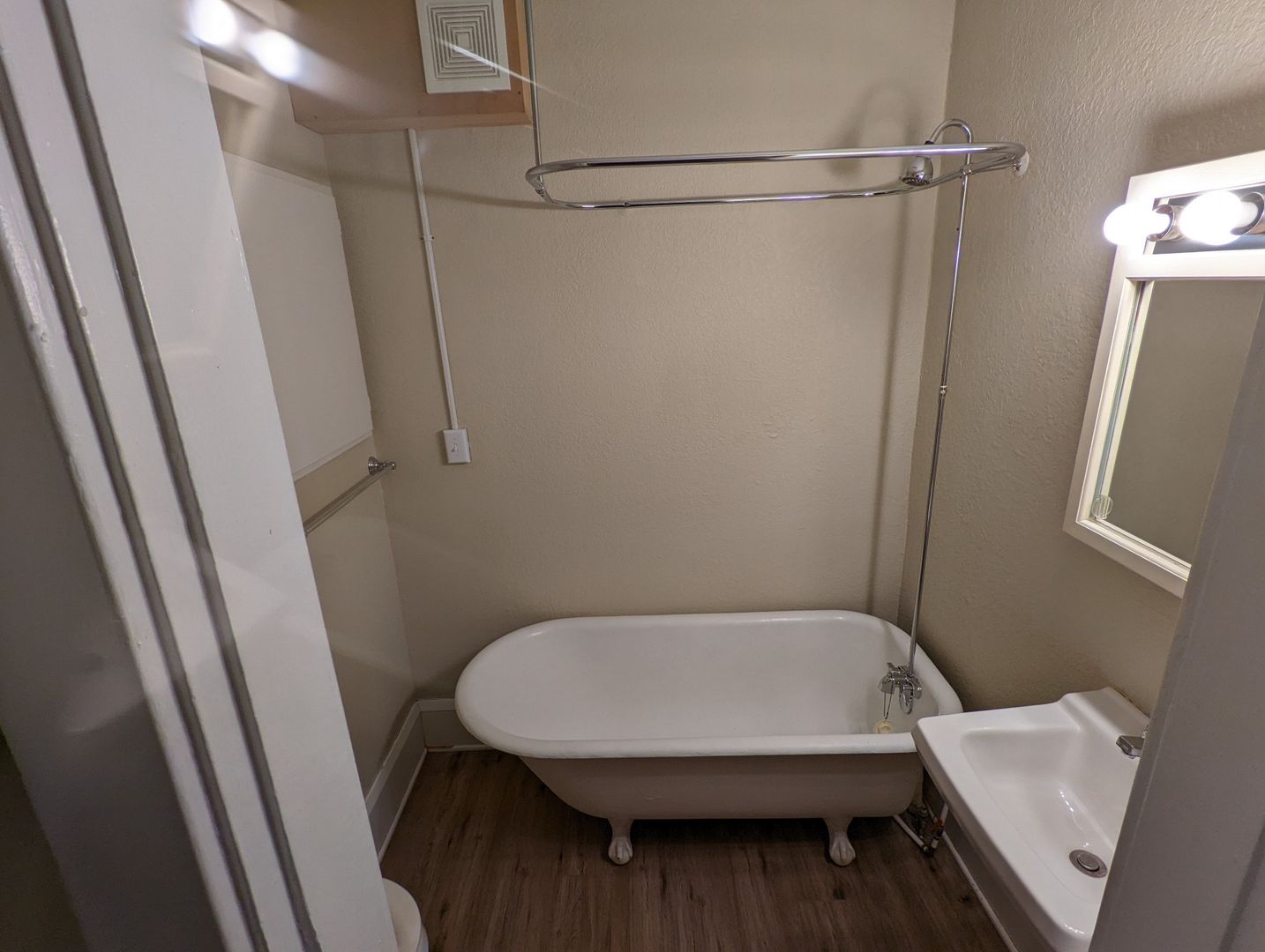 This 1 BR apartment is cozy and beautiful! It has a sizeable living room with large windows, a compact bedroom that comes with great closet space, and access to the bathroom and its claw-foot tub.
