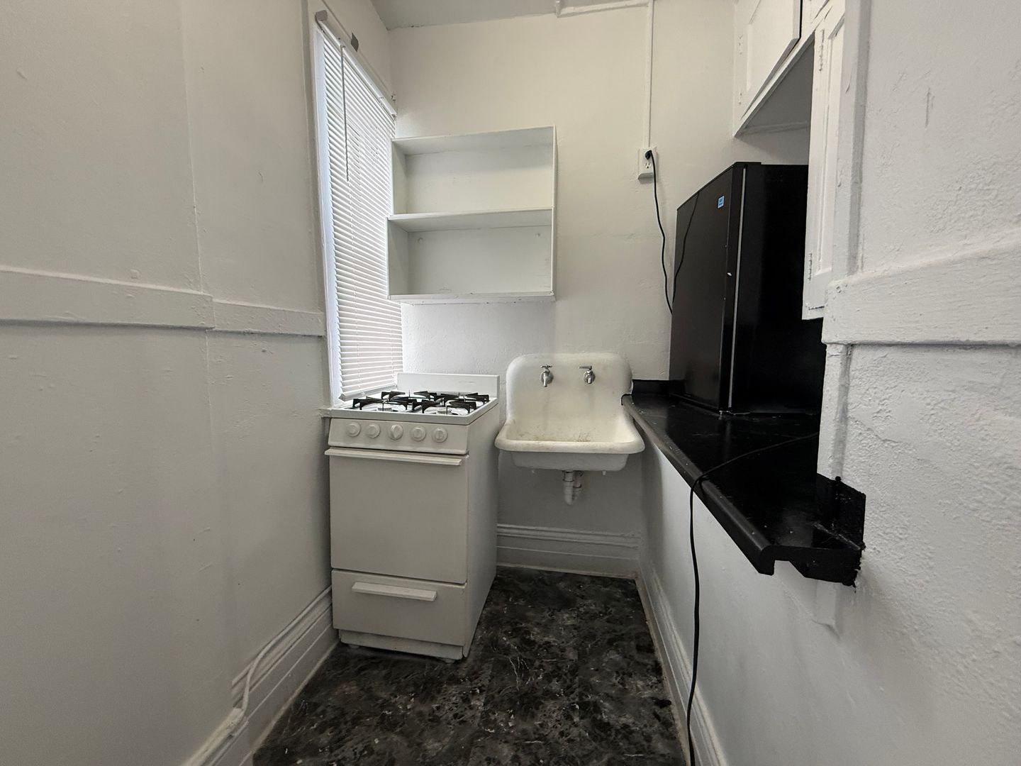 This charming studio apartment at 1302 Linden Ave, Minneapolis MN blends historic character with modern convenience. Featuring original hardwood floors, fresh paint, and large windows that flood the space with natural light, the open living area flows seamlessly into the kitchen. The kitchen boasts updated cabinetry, a compact gas range, and ample counter space—perfect for cooking and entertaining. The bathroom highlights a tasteful clawfoot tub and classic tile accents, adding timeless appeal. Shared onsite laundry keeps chores simple.