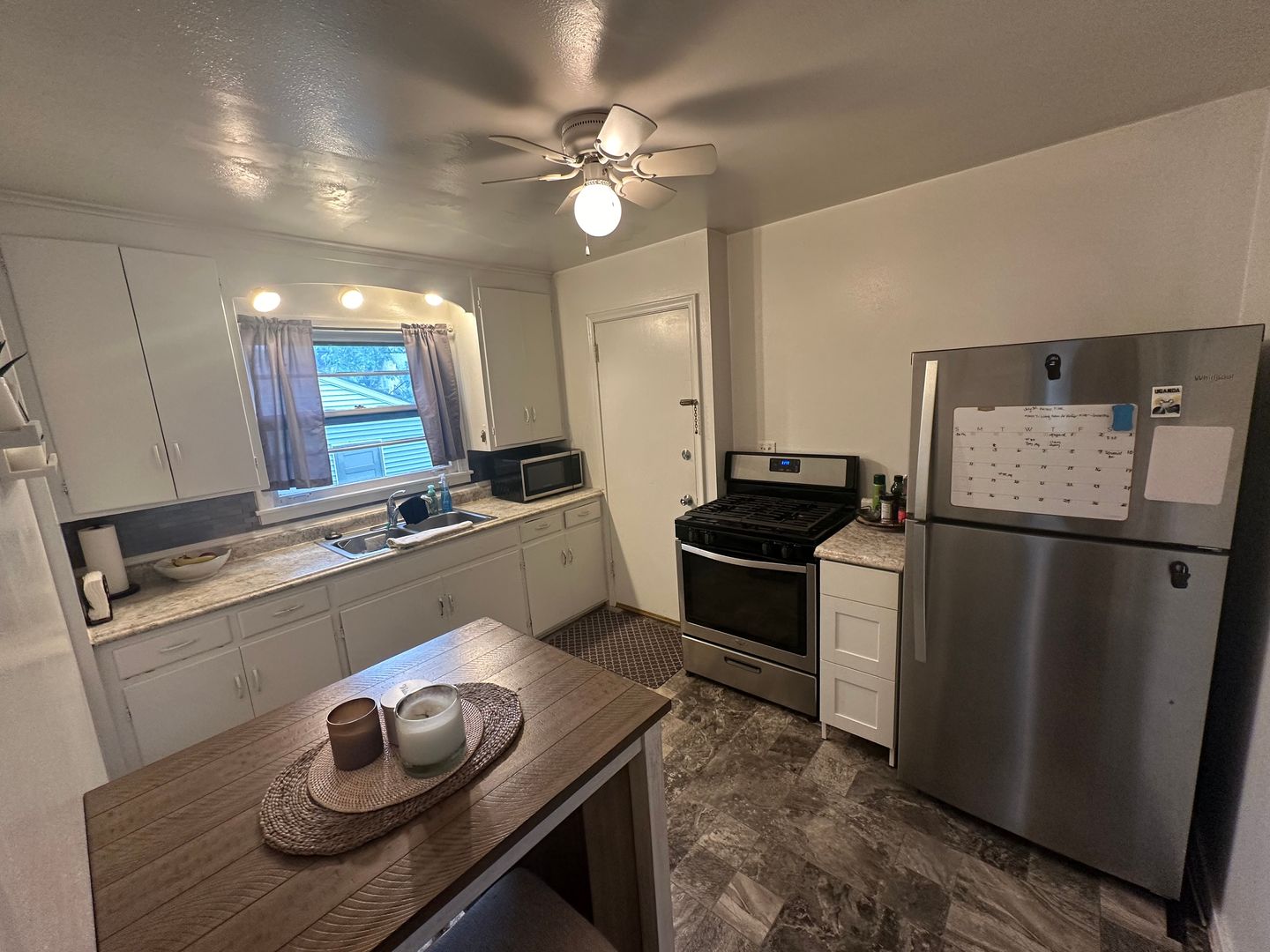 The floor plan features a spacious living room with large windows, so you get plenty of sunlight. The kitchen counters and backsplash were recently updated, and the large fridge and gas stove are great amenities!