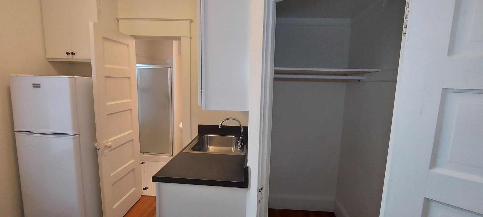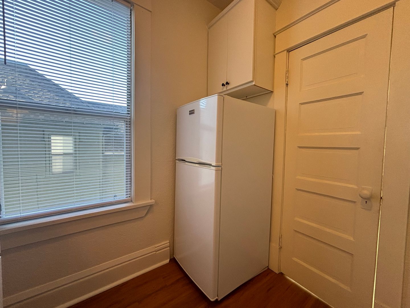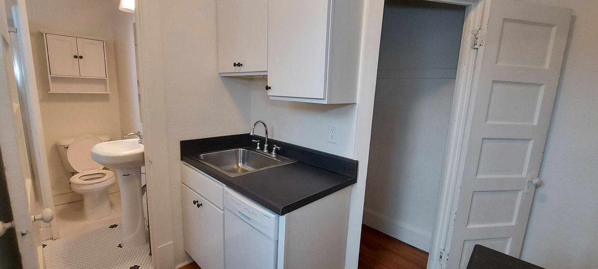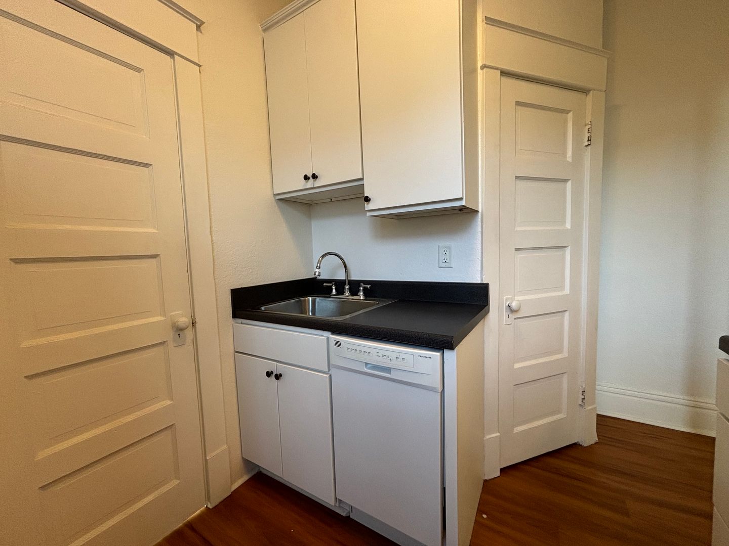 This is a beautiful second-floor studio apartment with so many awesome features: a spacious room with giant windows, a huge closet, an updated kitchen with tall white cabinets, and a dishwasher!