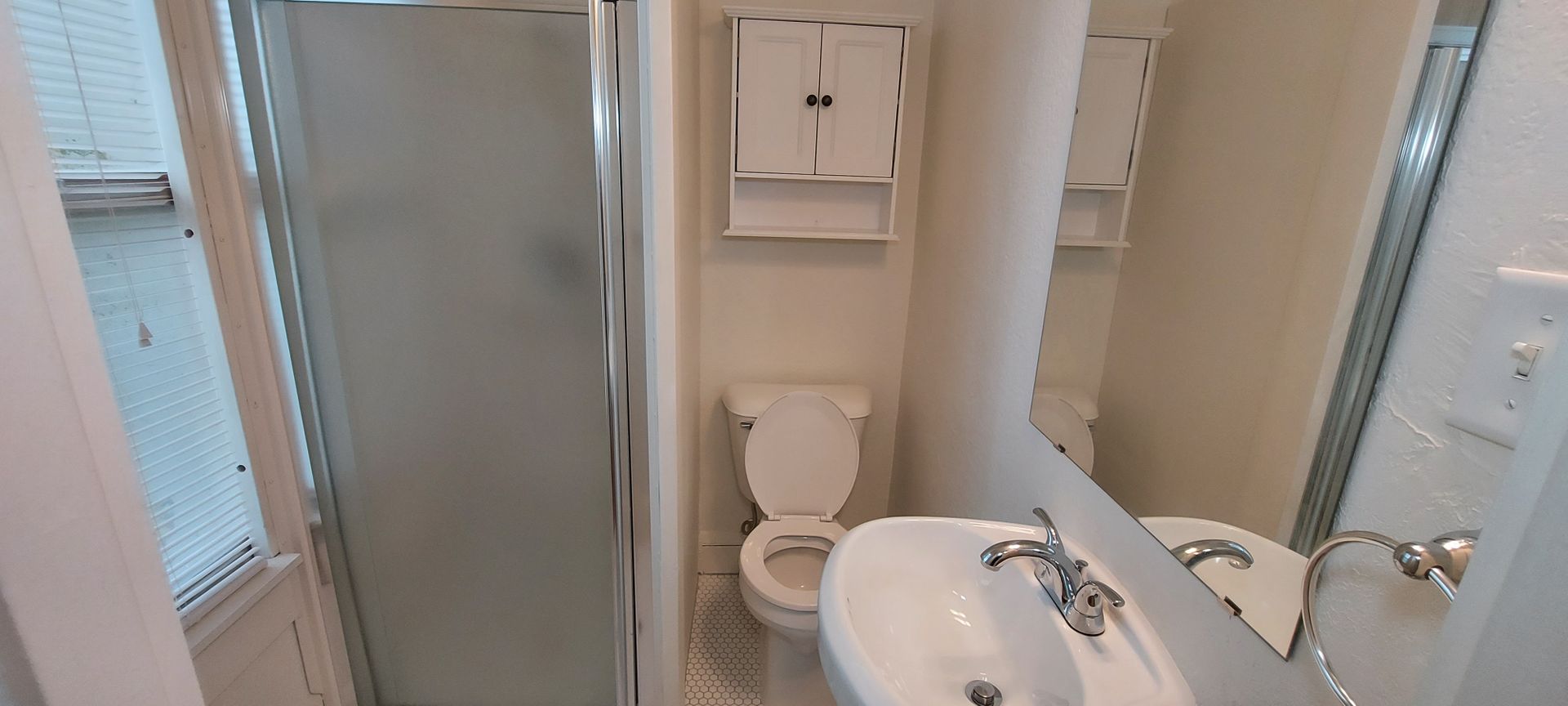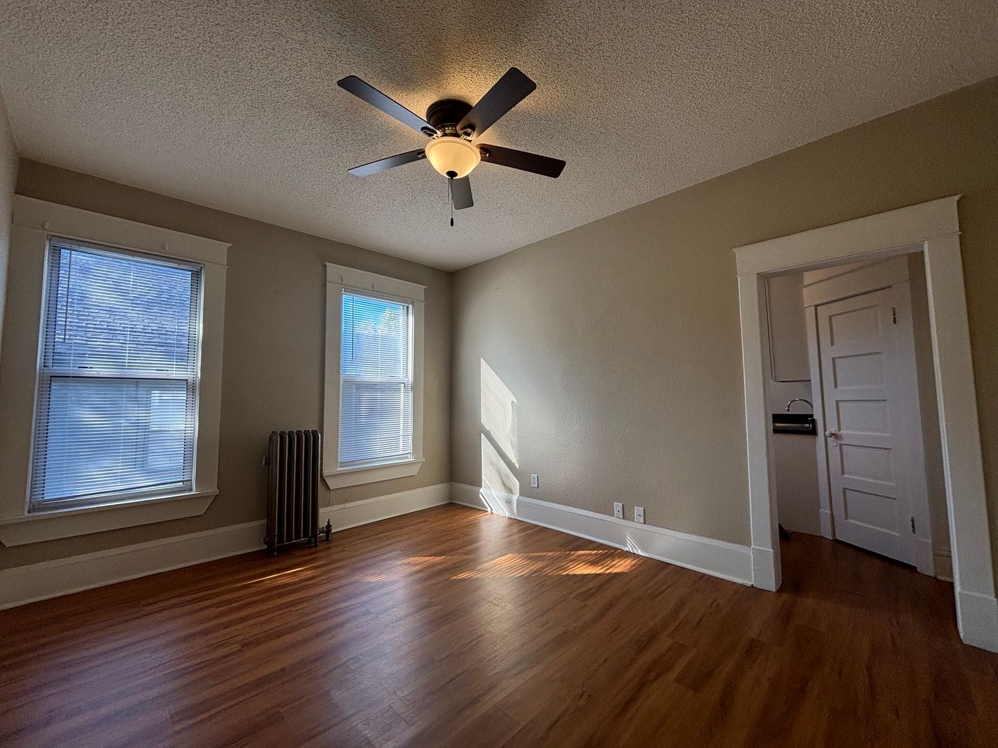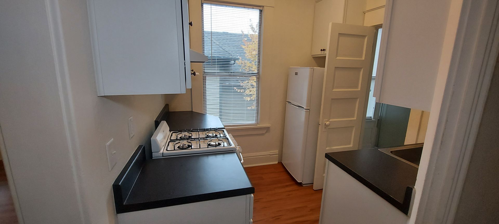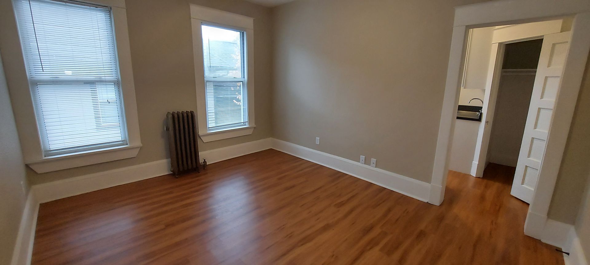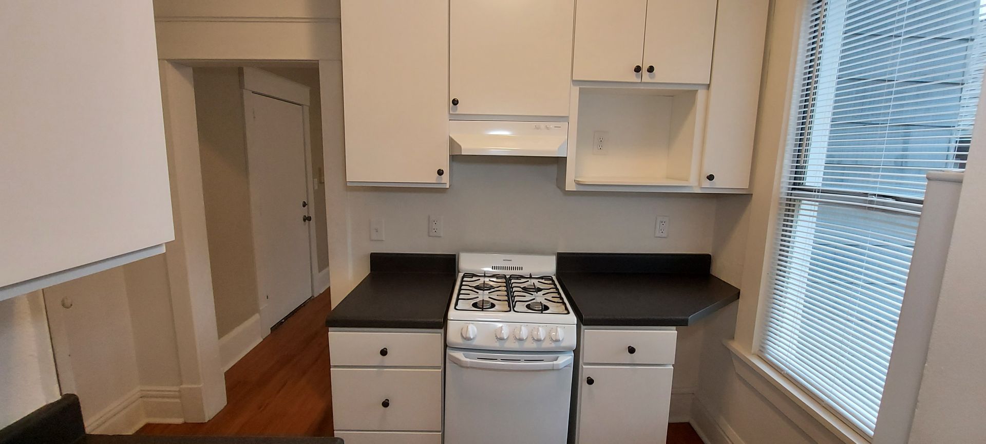 This is a beautiful second-floor studio apartment with so many awesome features: a spacious room with giant windows, a huge closet, an updated kitchen with tall white cabinets, and a dishwasher!