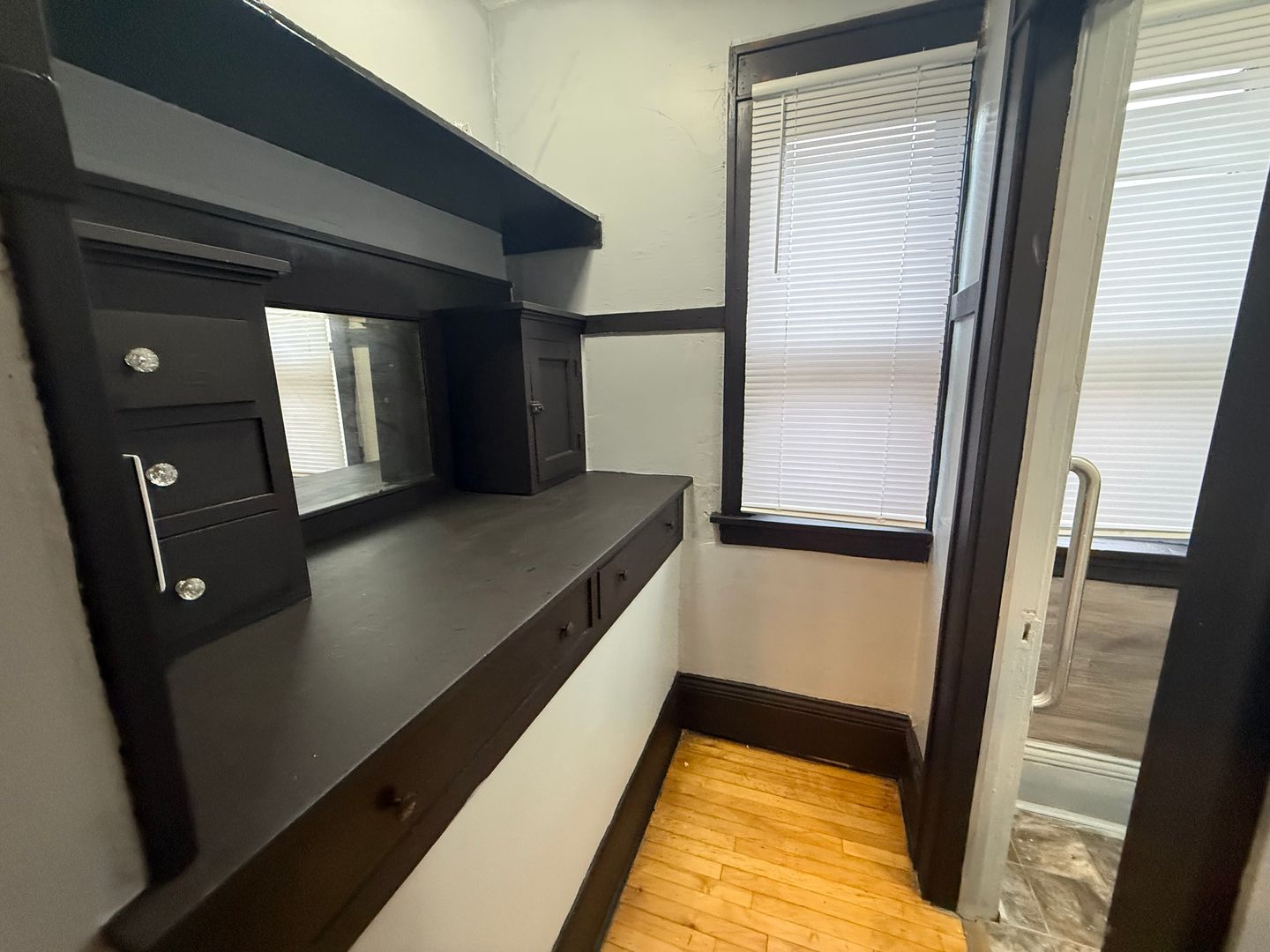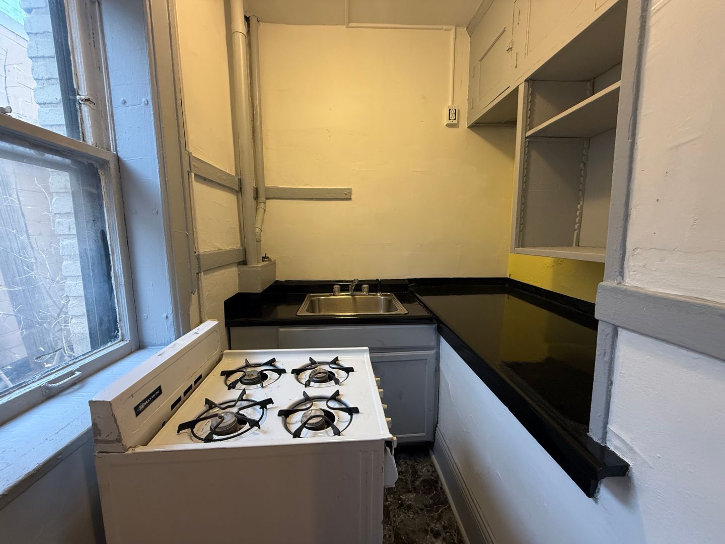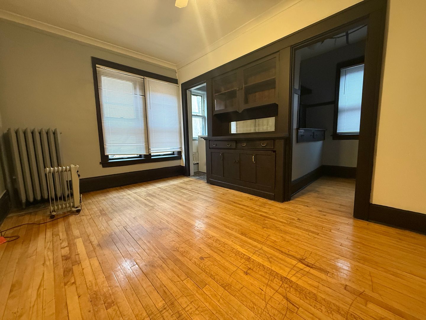 This charming studio apartment at 1302 Linden Ave, Minneapolis MN blends historic character with modern convenience. Featuring original hardwood floors, fresh paint, and large windows that flood the space with natural light, the open living area flows seamlessly into the kitchen. The kitchen boasts updated cabinetry, a compact gas range, and ample counter space—perfect for cooking and entertaining. The bathroom highlights a tasteful clawfoot tub and classic tile accents, adding timeless appeal. Shared onsite laundry keeps chores simple.