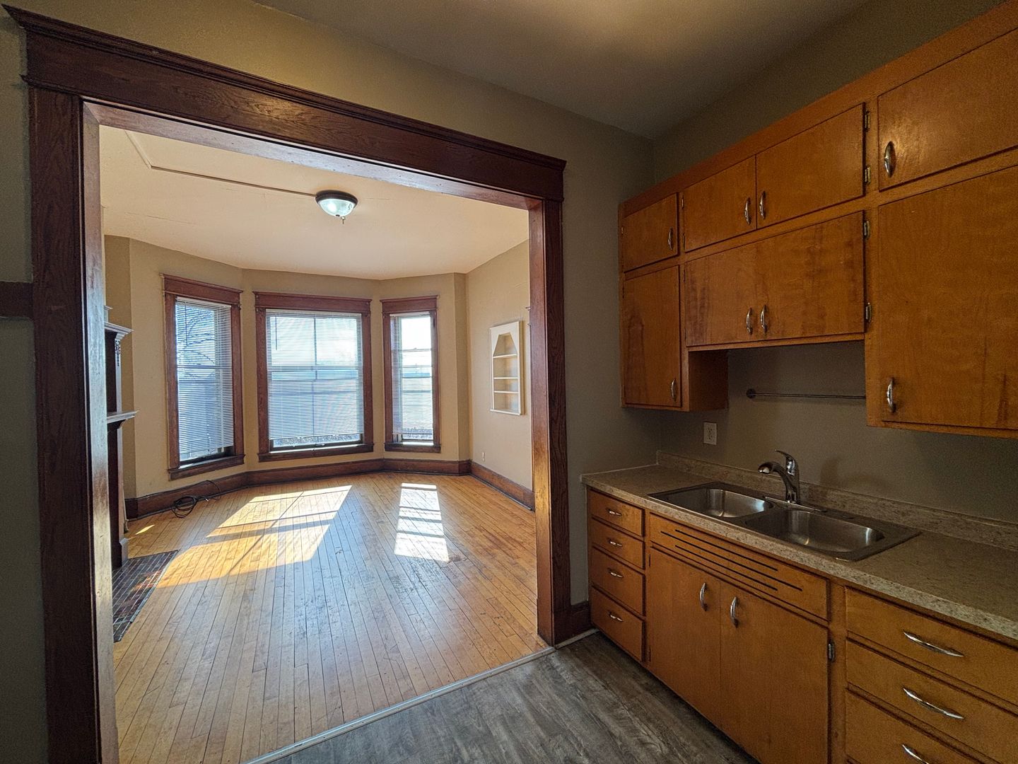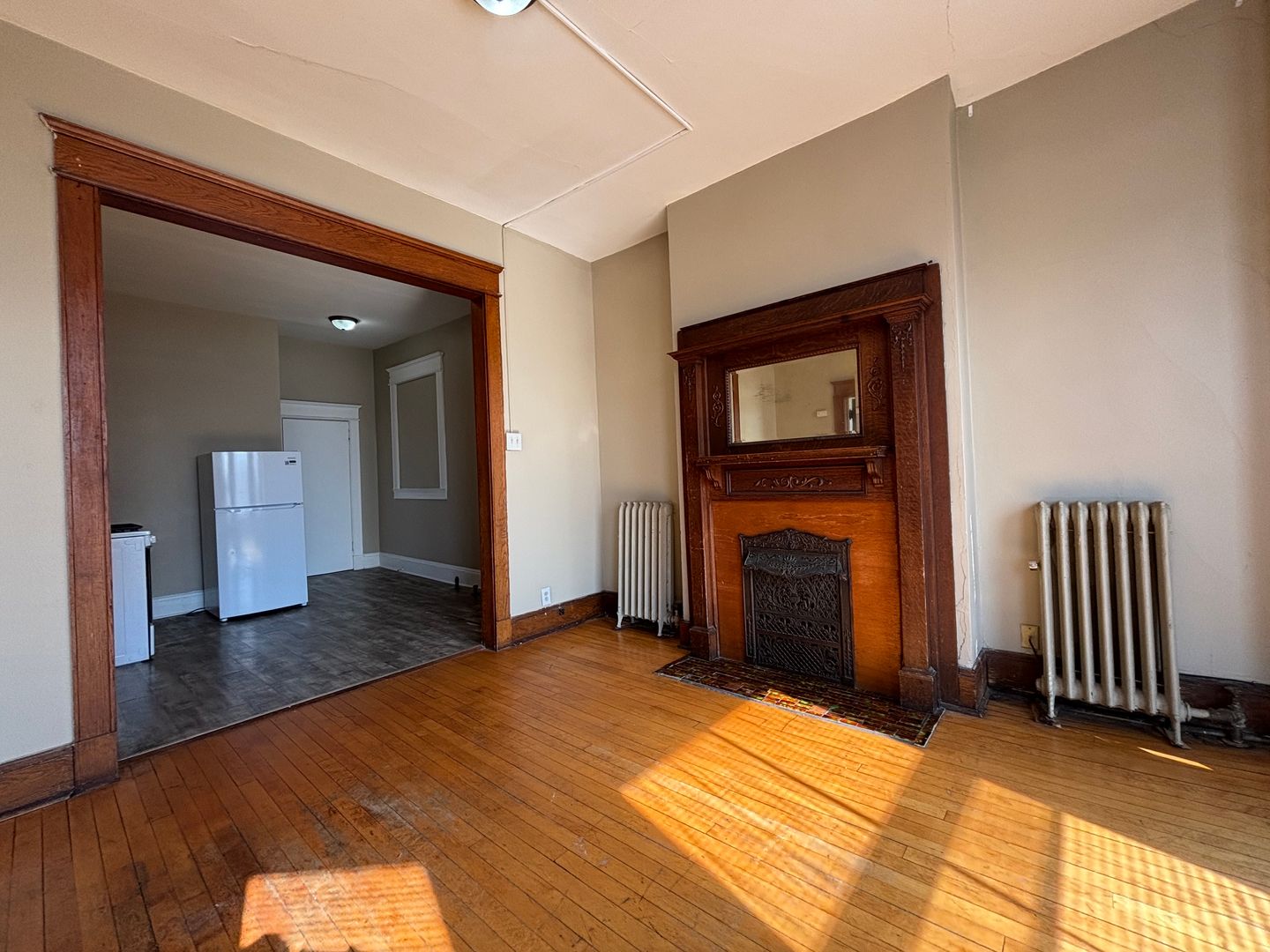 This spacious one-bedroom offers a warm blend of historic detail and natural light. Hardwood floors run throughout, complemented by tall ceilings, original woodwork, and large windows that brighten the entire living space.