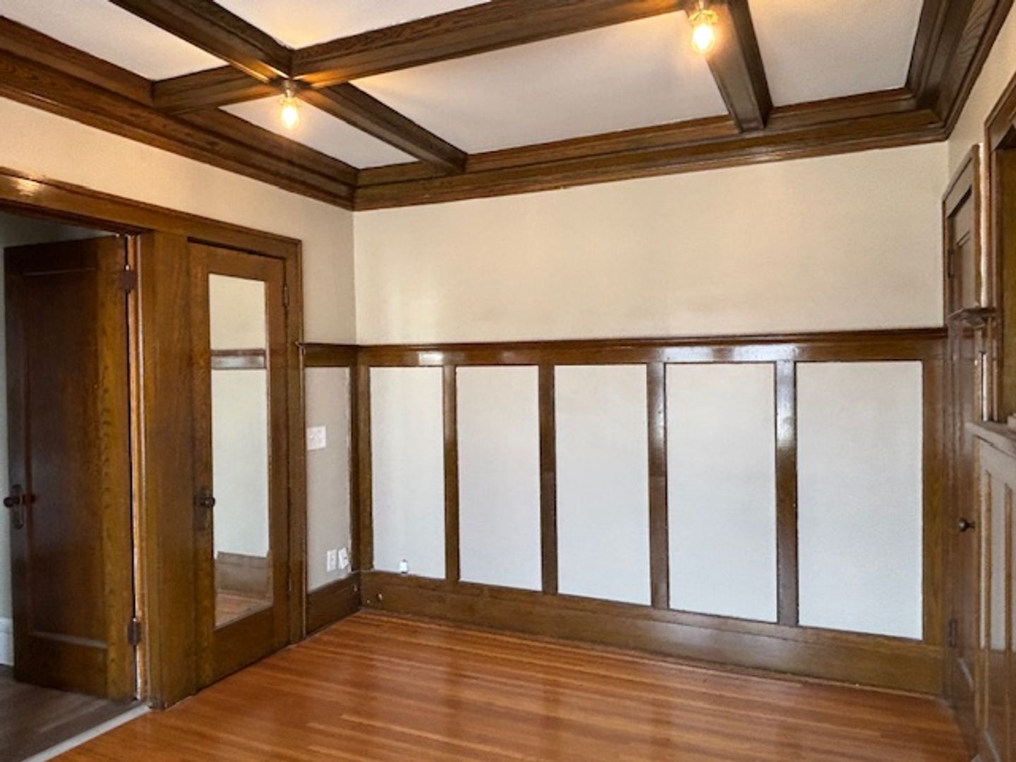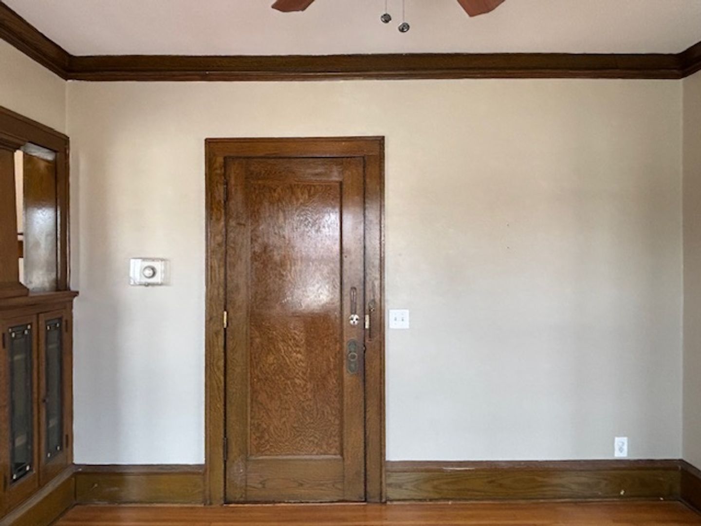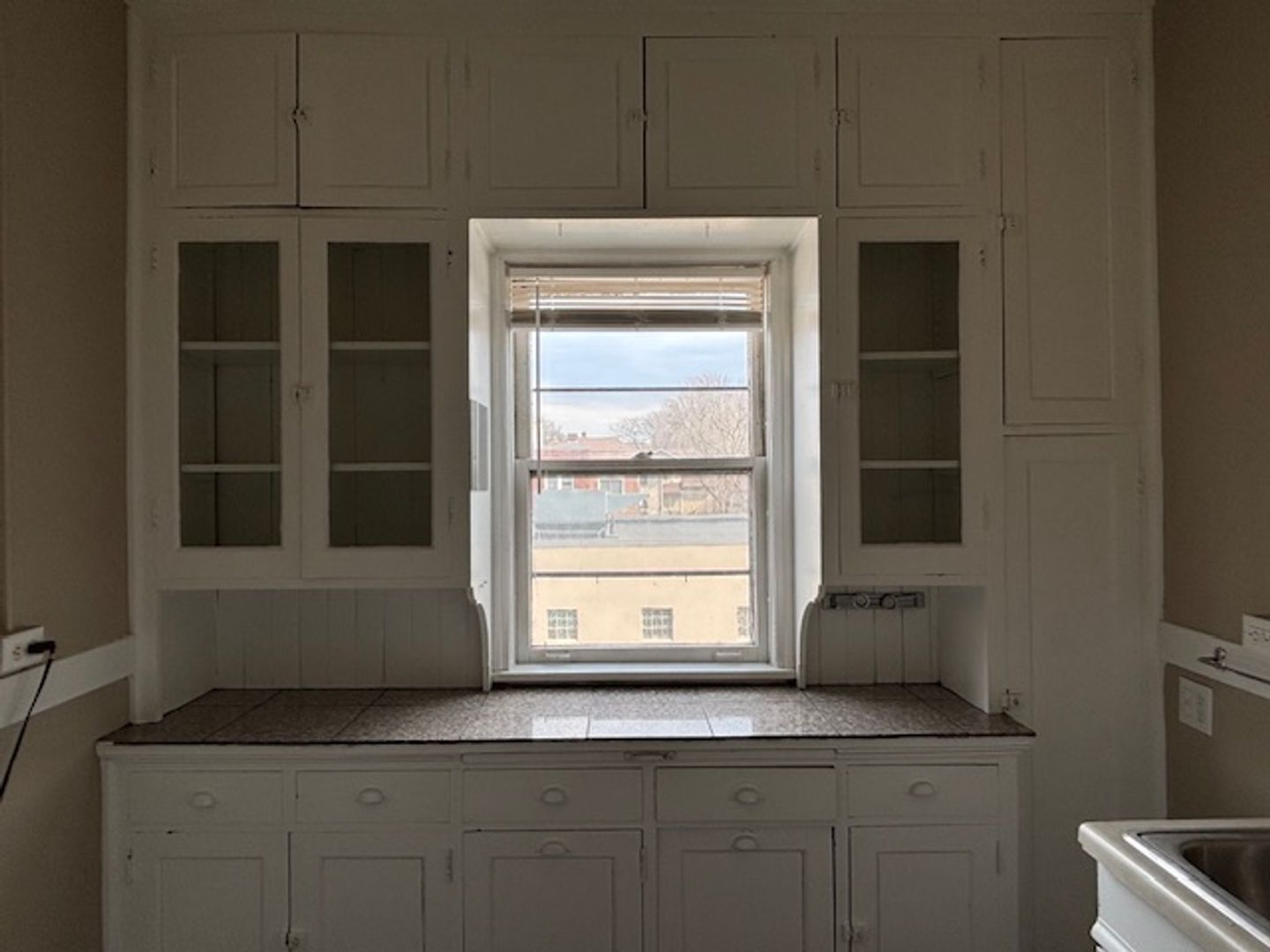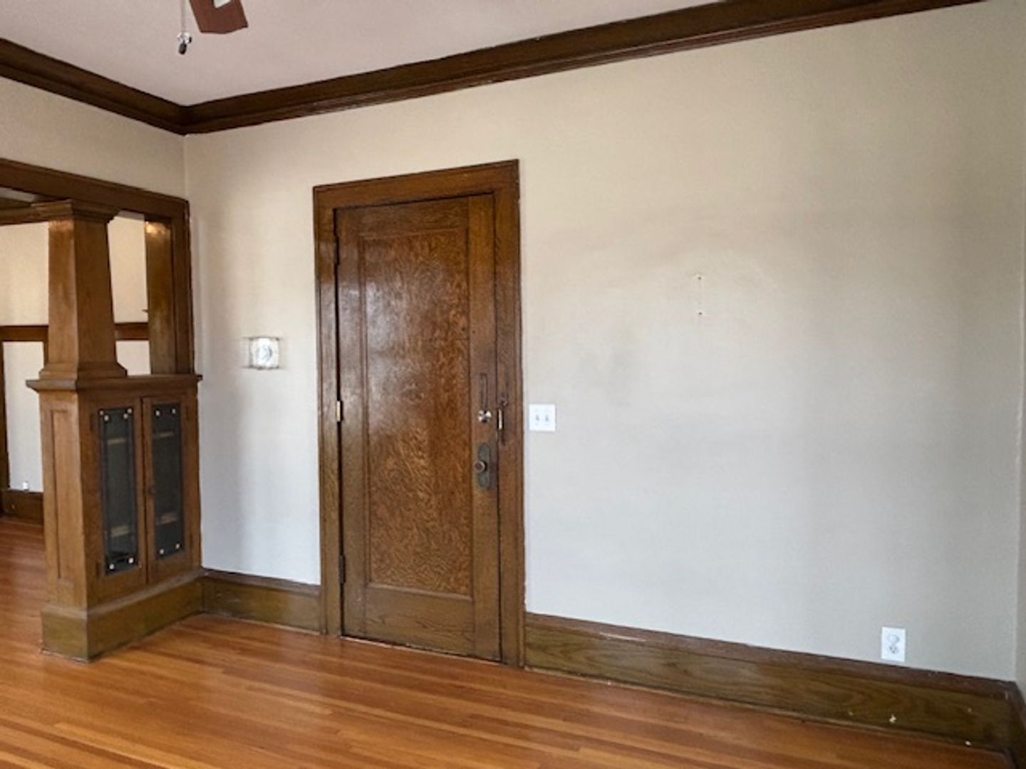 This home features gorgeous natural woodwork, a built-in buffet, hardwood floors, and is located on the upper level of this historic building.