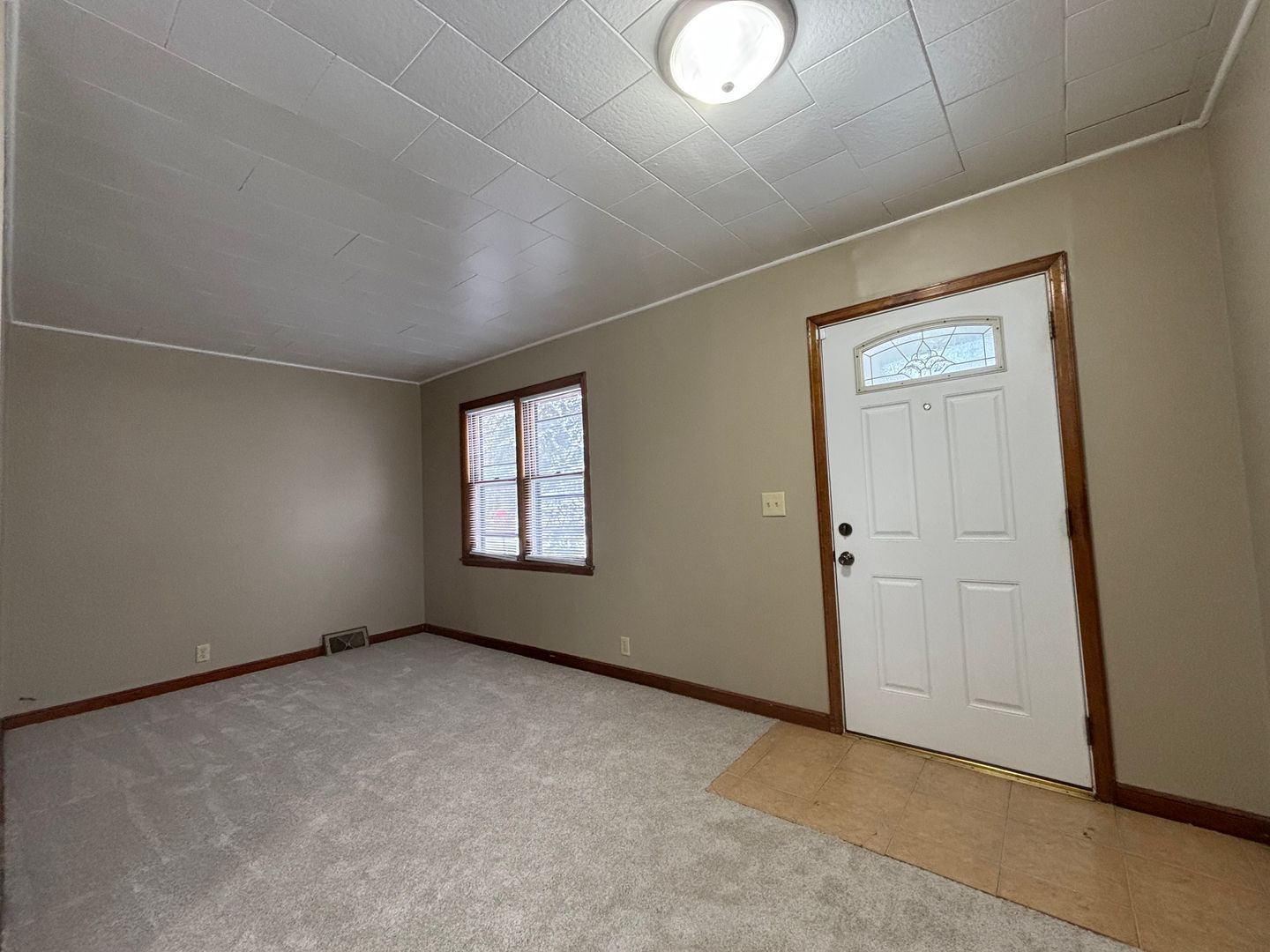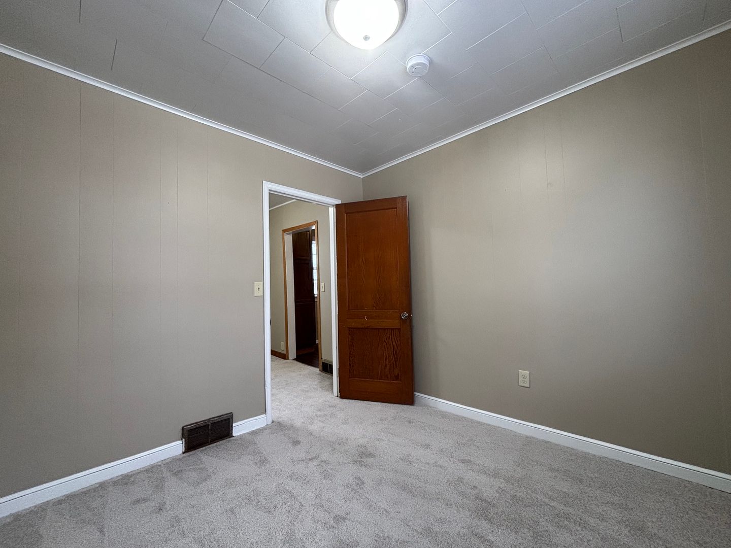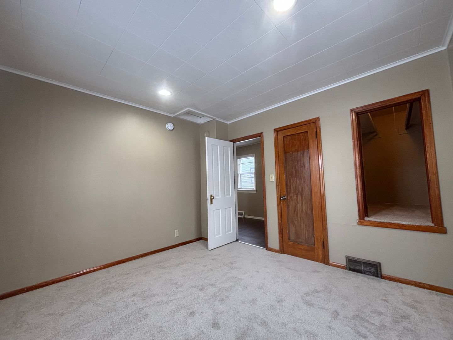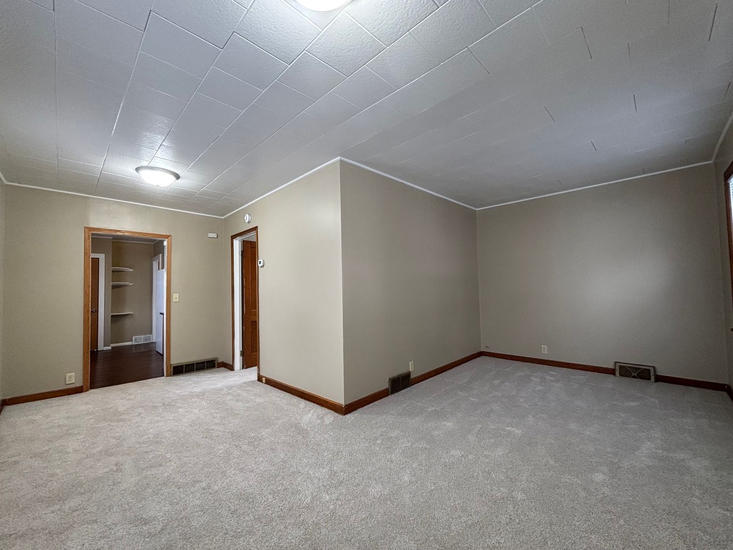 This 2 bedroom bungalow has carpet throughout living room entry and bedrooms. It sits on a large corner lot with a fenced in backyard and detached garage. The basement has tons of room for storage. It's a few short blocks to several parks, shopping and easy access to the highway.