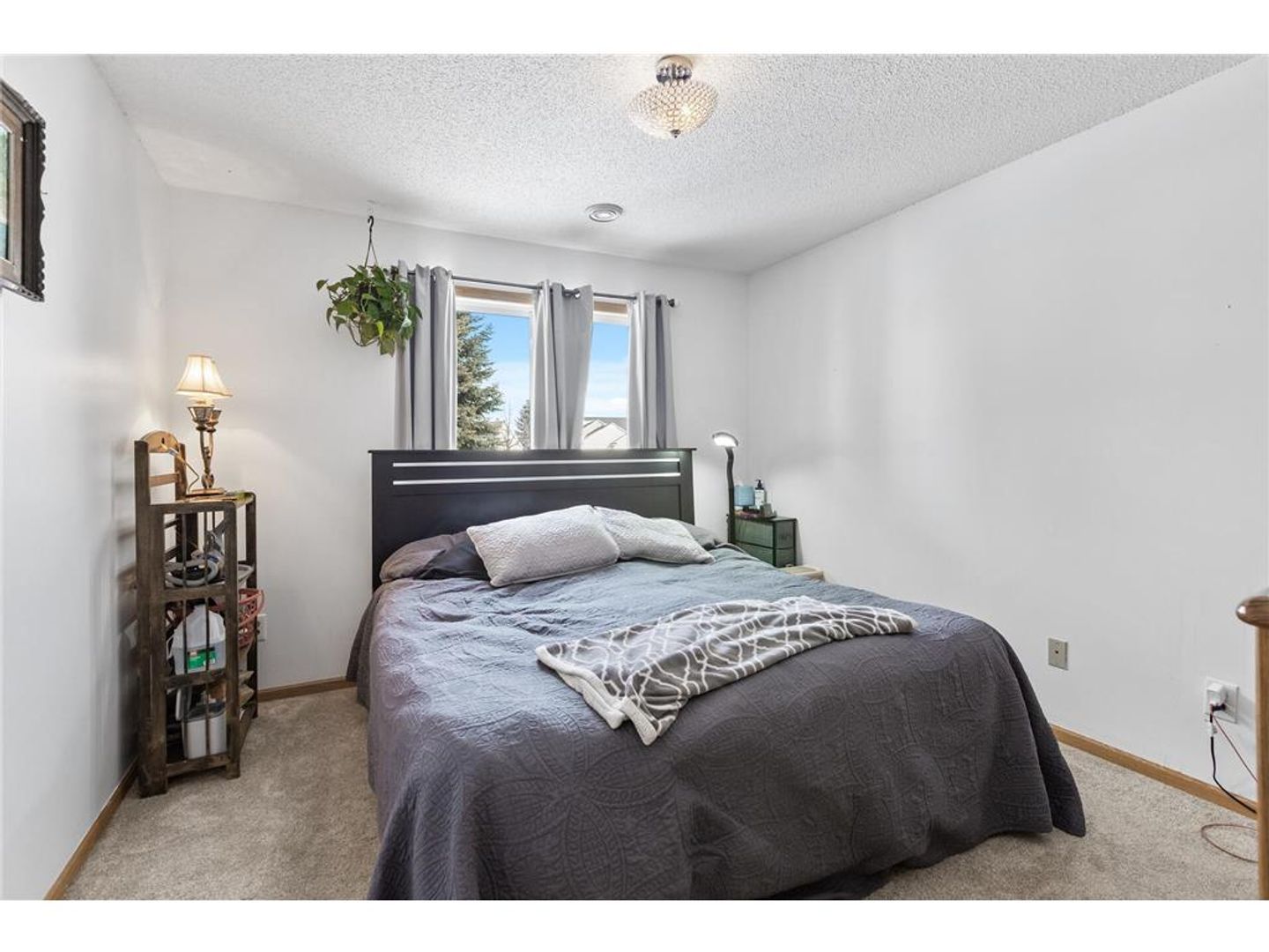The lower level includes a spacious second living room, utility room with in-unit laundry, two additional bedrooms, and a second full bathroom. One of the bedrooms features a sliding glass door that opens directly to the back patio and backyard space.
