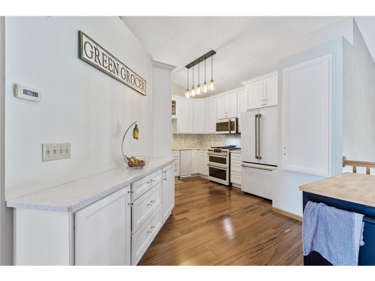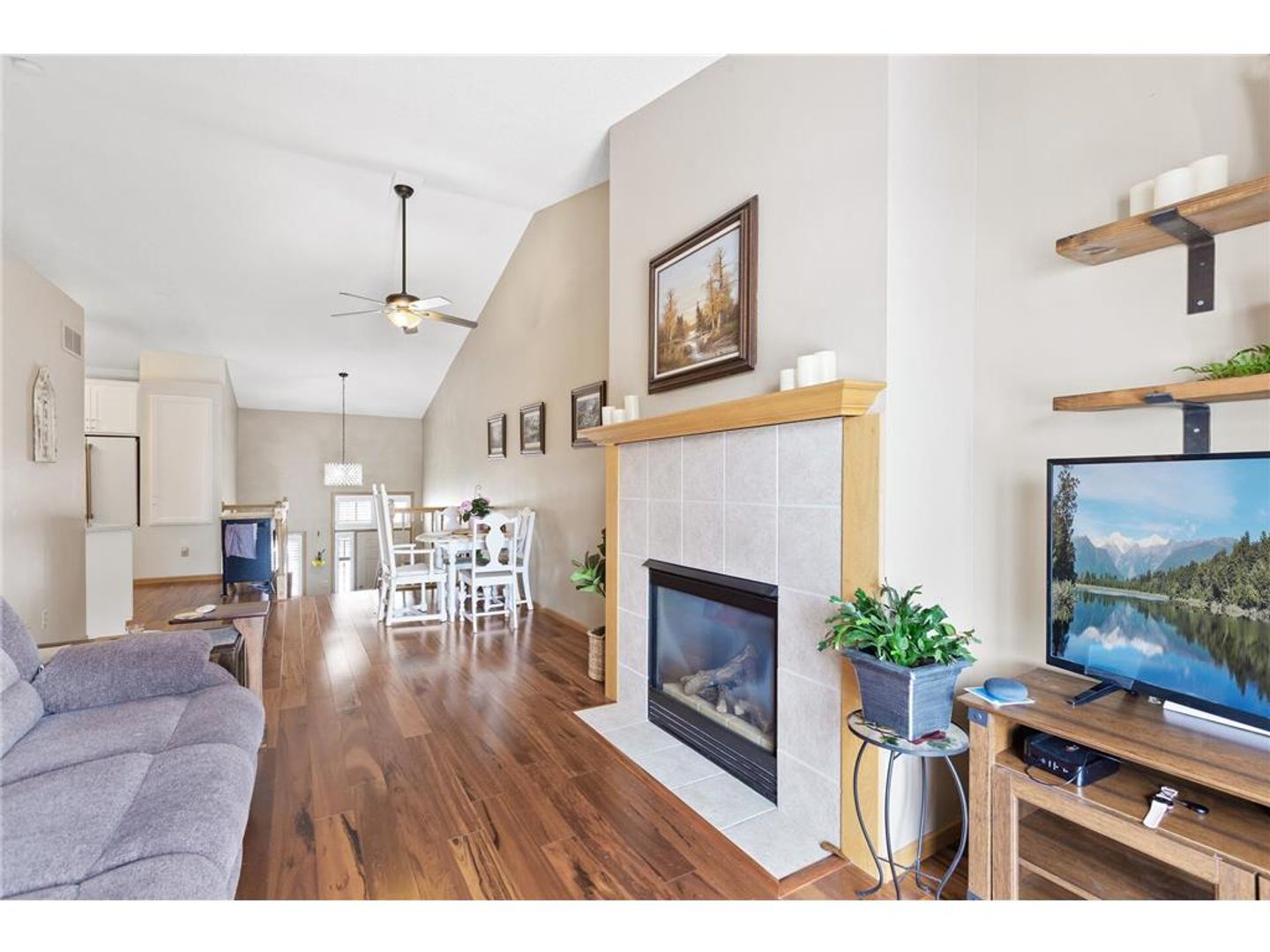 The upper level features a beautifully updated kitchen with granite countertops, modern cabinetry, stainless steel appliances, gas stove, dishwasher, and a large sink. Just off the kitchen is a dedicated dining area that flows into a bright and inviting living room complete with a gas fireplace and sliding glass door leading to a private back deck. Hardwood floors run throughout the upper level, creating a clean and modern feel.