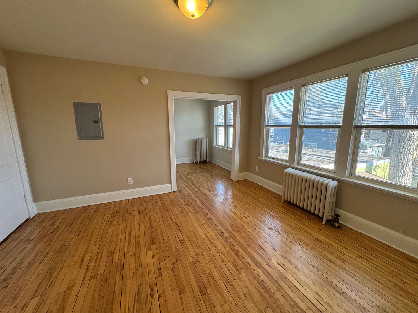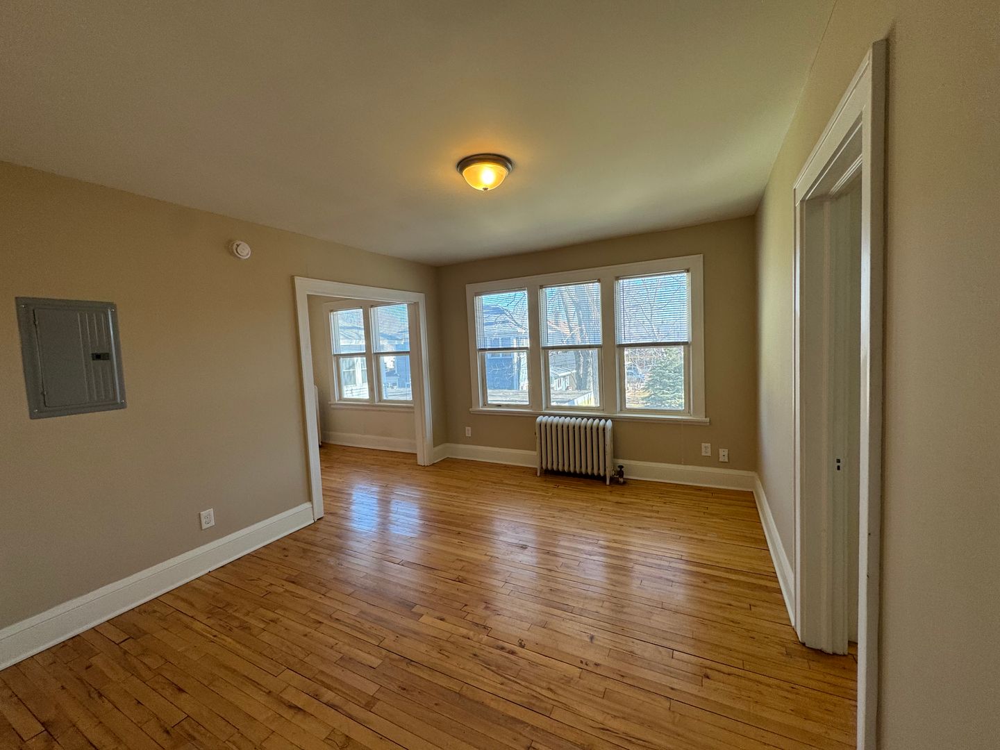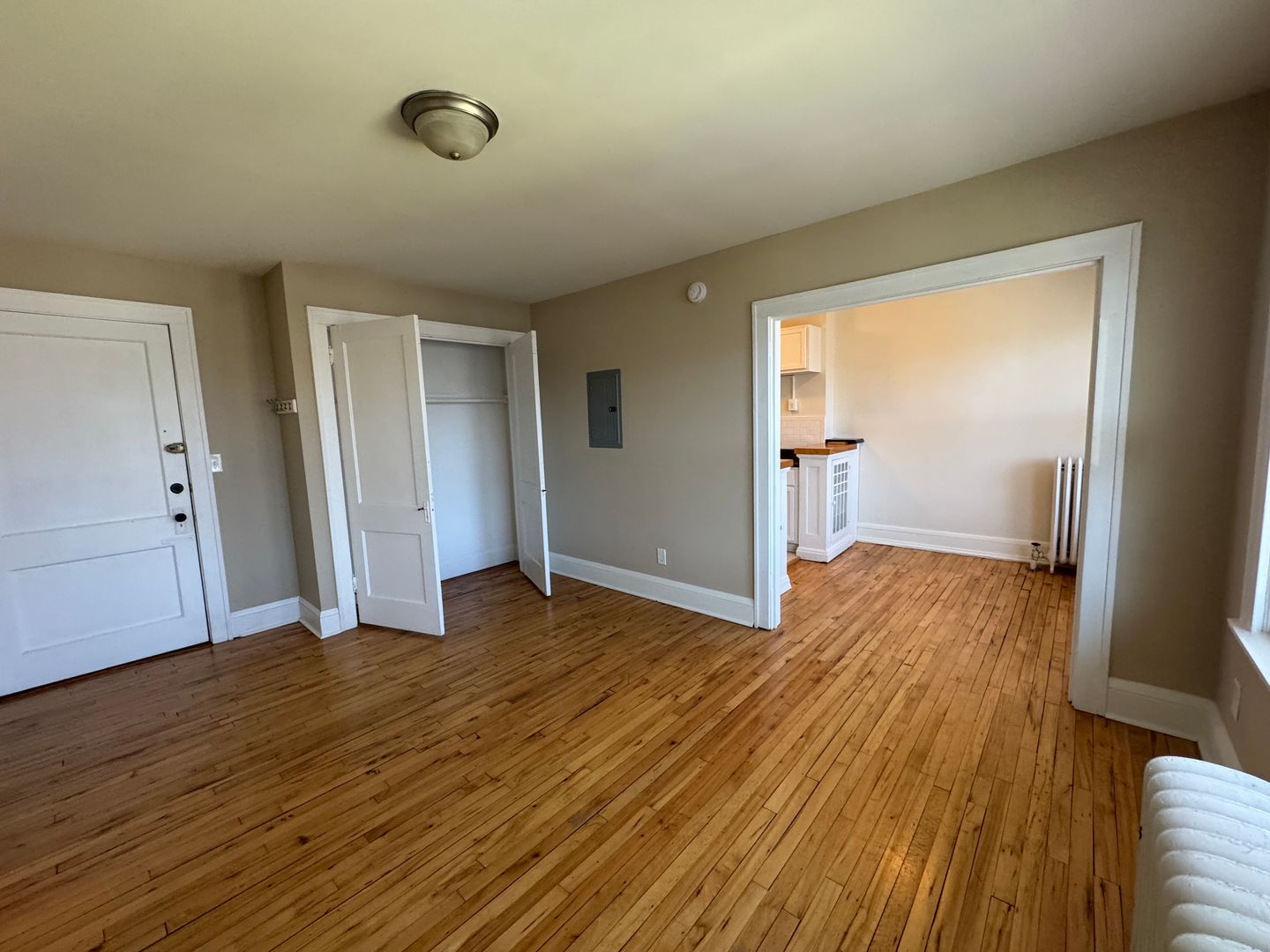 This top floor corner studio is filled with lots of natural light and timeless character, featuring hardwood floors and built-in cabinetry that give the space warmth and personality.