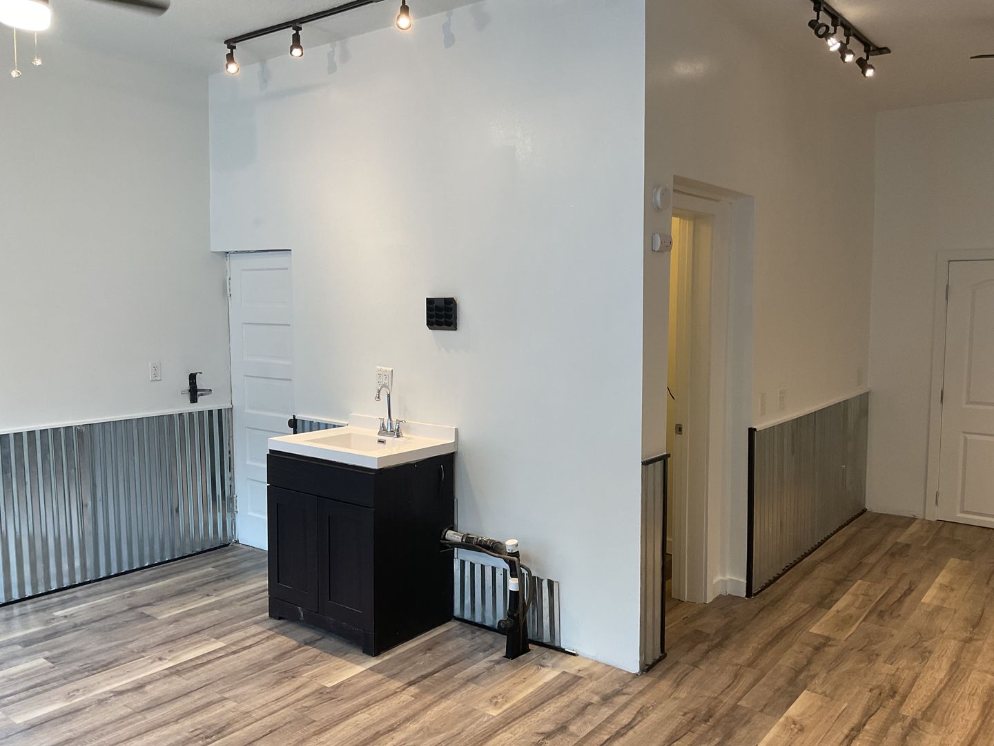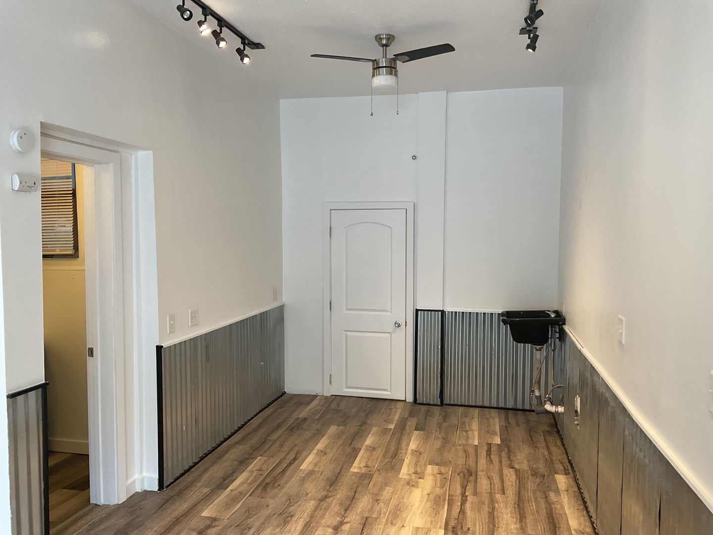 Available Now!! Come and hang your new sign up!! This salon has new flooring and a metal wainscott around unit walls. 3 salon work stations and a sink currently in unit with room for more.