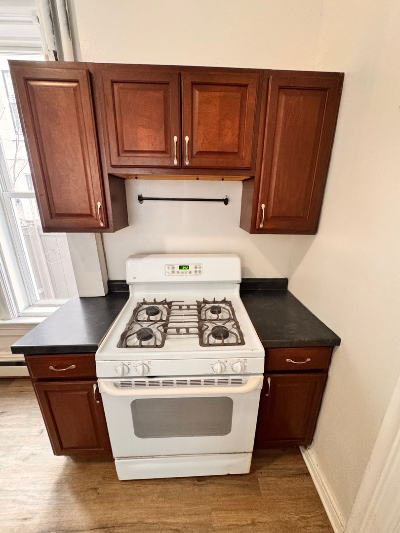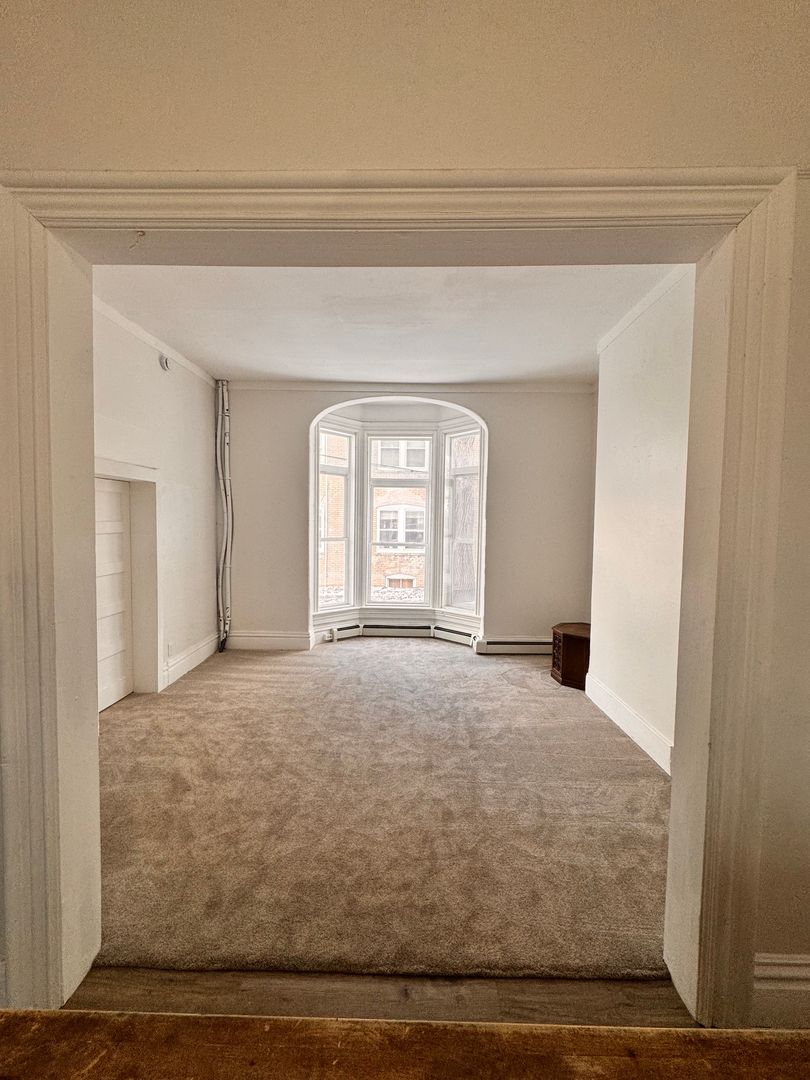 This newly rehabbed 2-bedroom, 1-bathroom apartment boasts a range of modern amenities that are sure to impress. Step inside to find new carpeting and flooring throughout, complemented by freshly painted walls and very tall ceilings that create a spacious and inviting atmosphere.