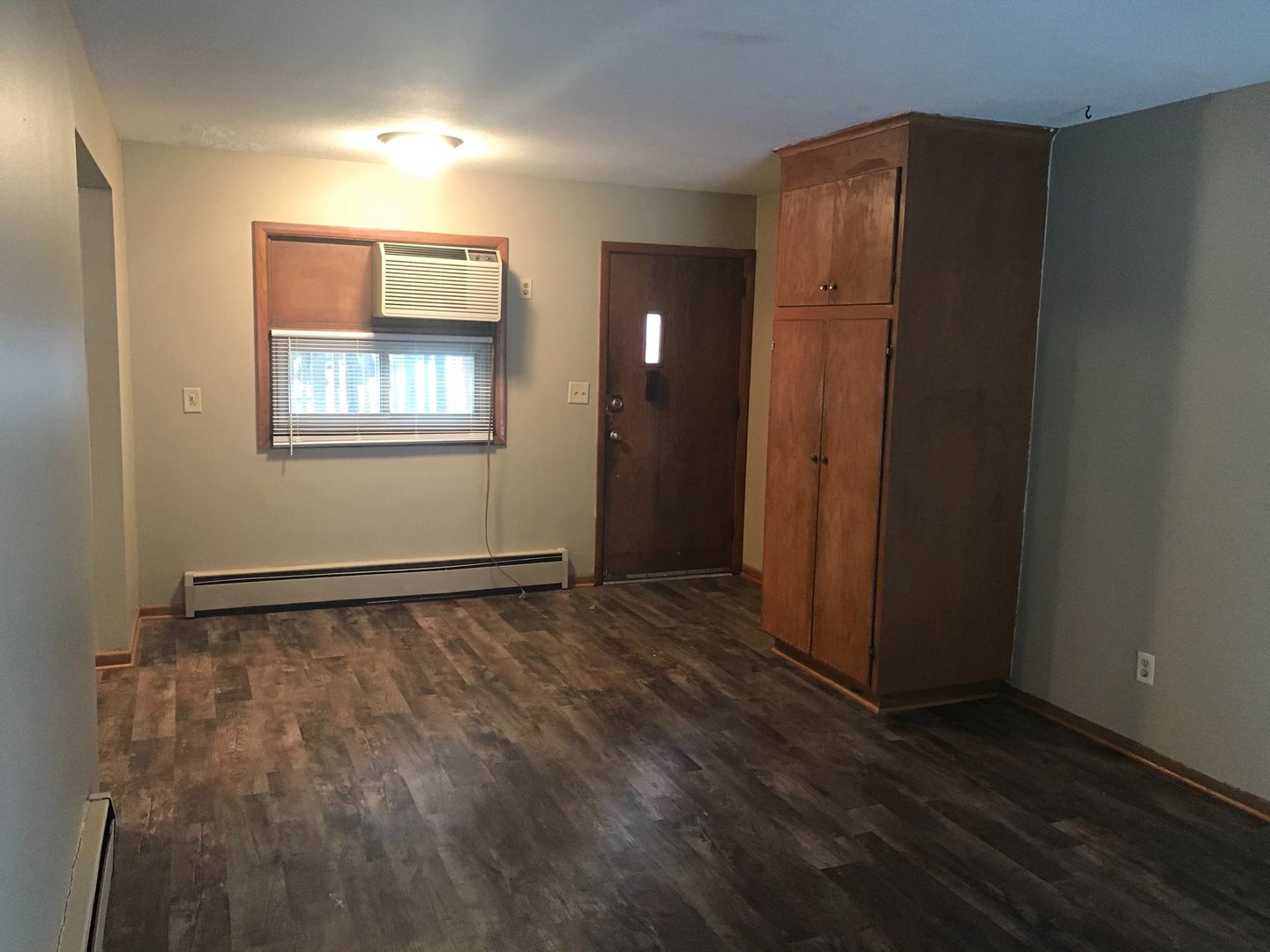The unit includes private front and back entrances for added privacy, along with a wall-mounted air conditioner to keep you comfortable during the summer months. Additional conveniences include on-site laundry and off-street parking.