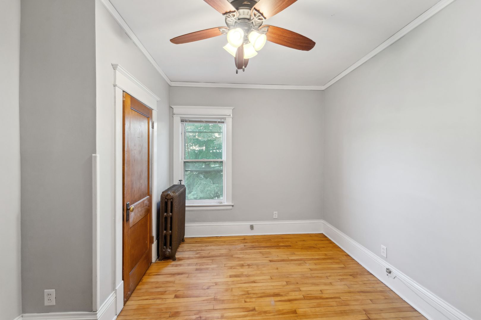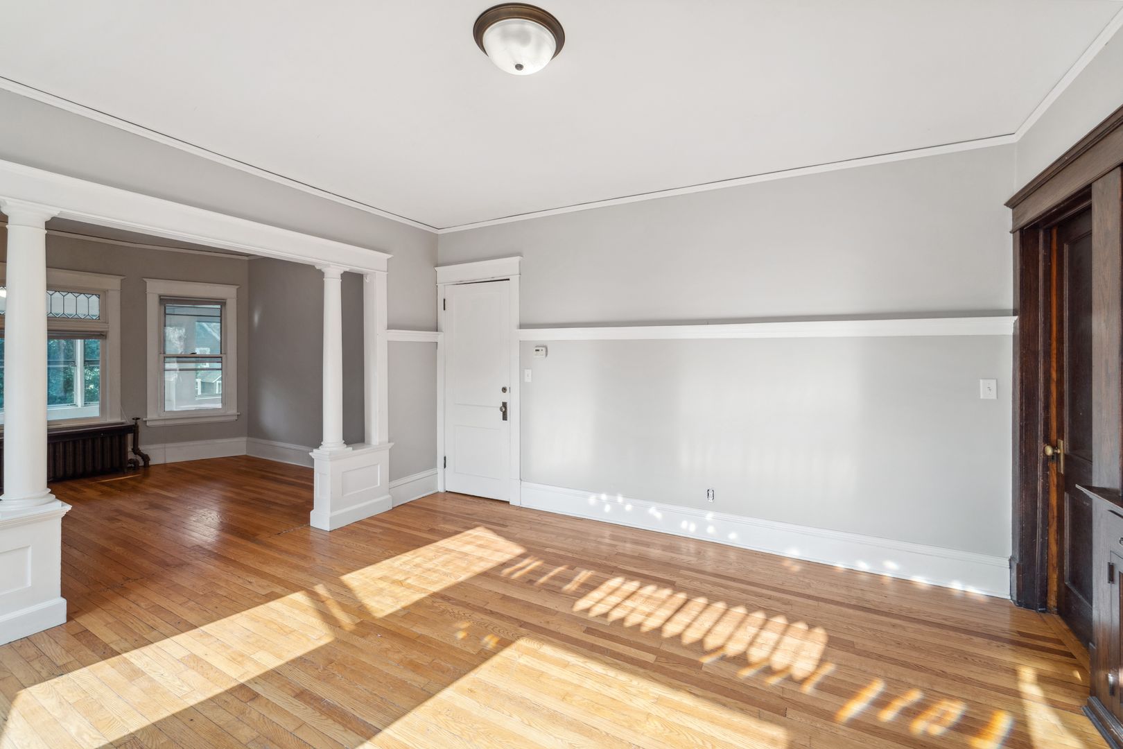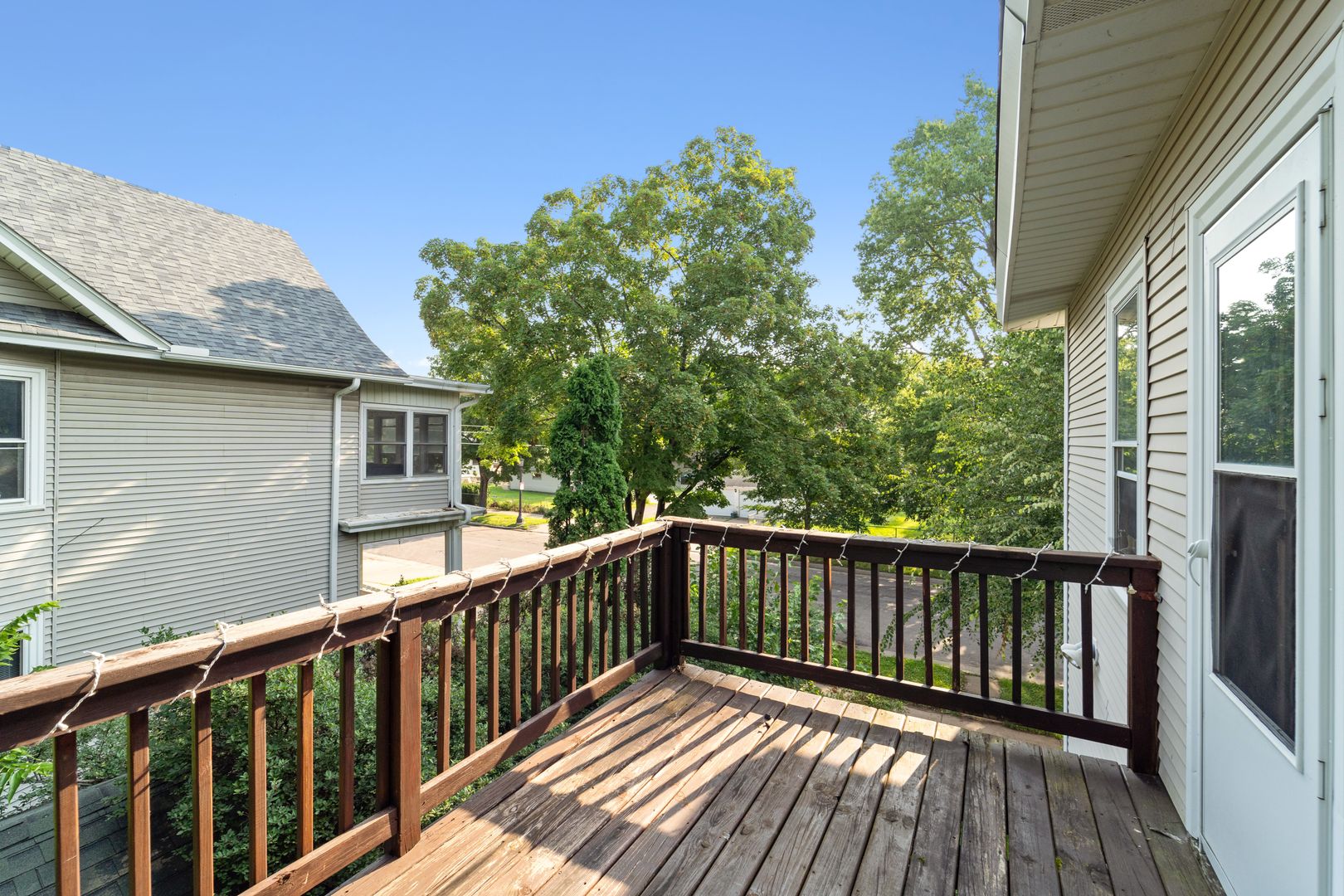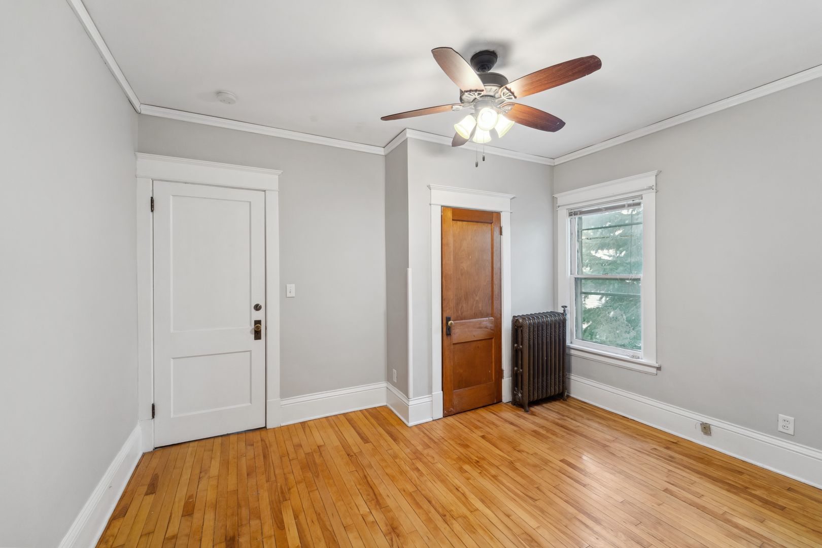 This upper-level duplex is located on a quiet corner lot in a nice Saint Paul neighborhood. It has a front porch that’s great for relaxing and a back deck and patio where you can spend time outside or have a barbecue. The home has a lot of natural light, with bright hardwood floors, and original built-in cabinets that give it some classic charm. Crown molding adds a nice touch to the space, and ceiling fans help keep things comfortable.