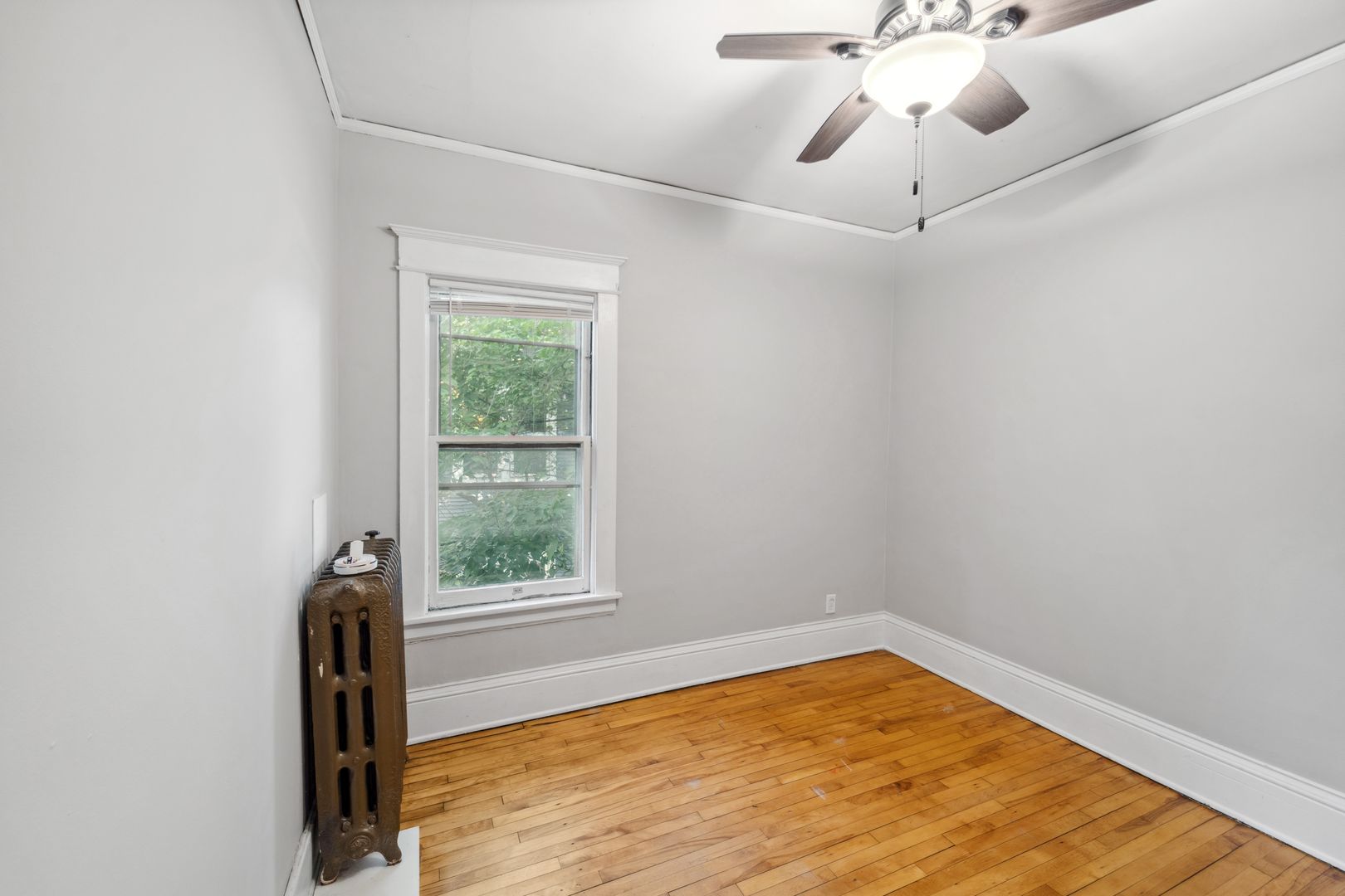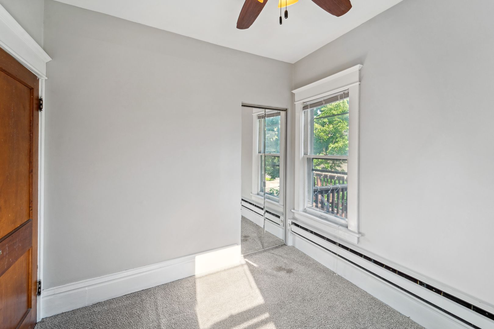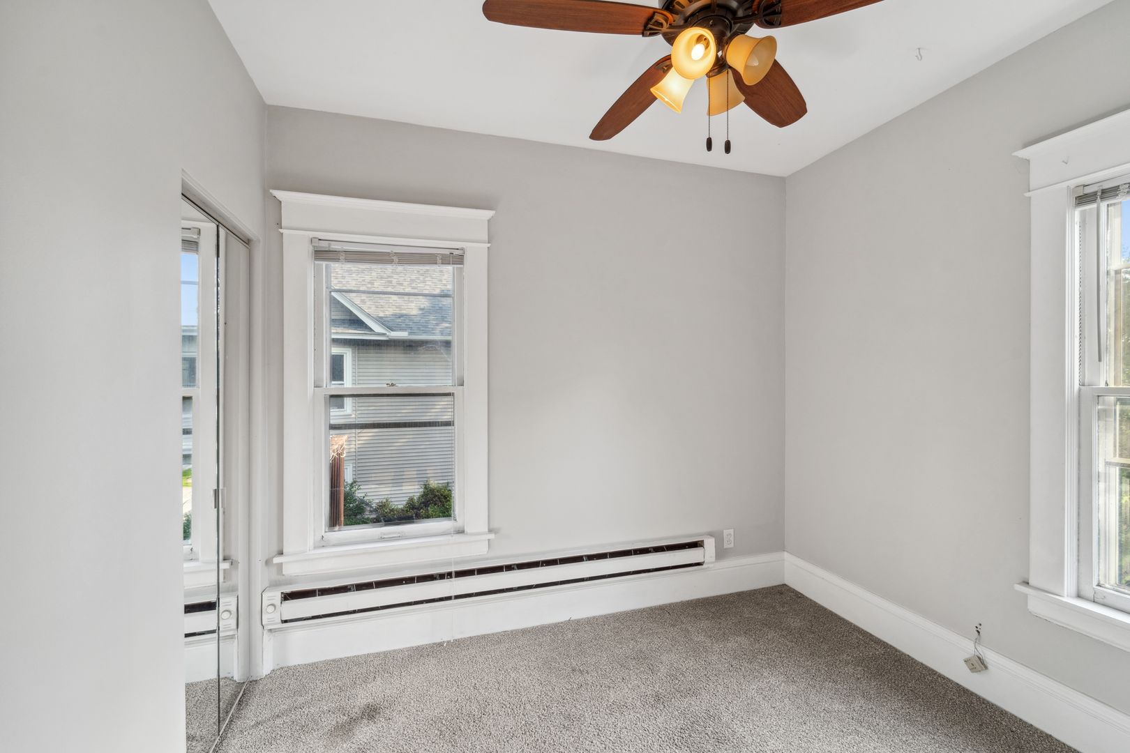 This upper-level duplex is located on a quiet corner lot in a nice Saint Paul neighborhood. It has a front porch that’s great for relaxing and a back deck and patio where you can spend time outside or have a barbecue. The home has a lot of natural light, with bright hardwood floors, and original built-in cabinets that give it some classic charm. Crown molding adds a nice touch to the space, and ceiling fans help keep things comfortable.