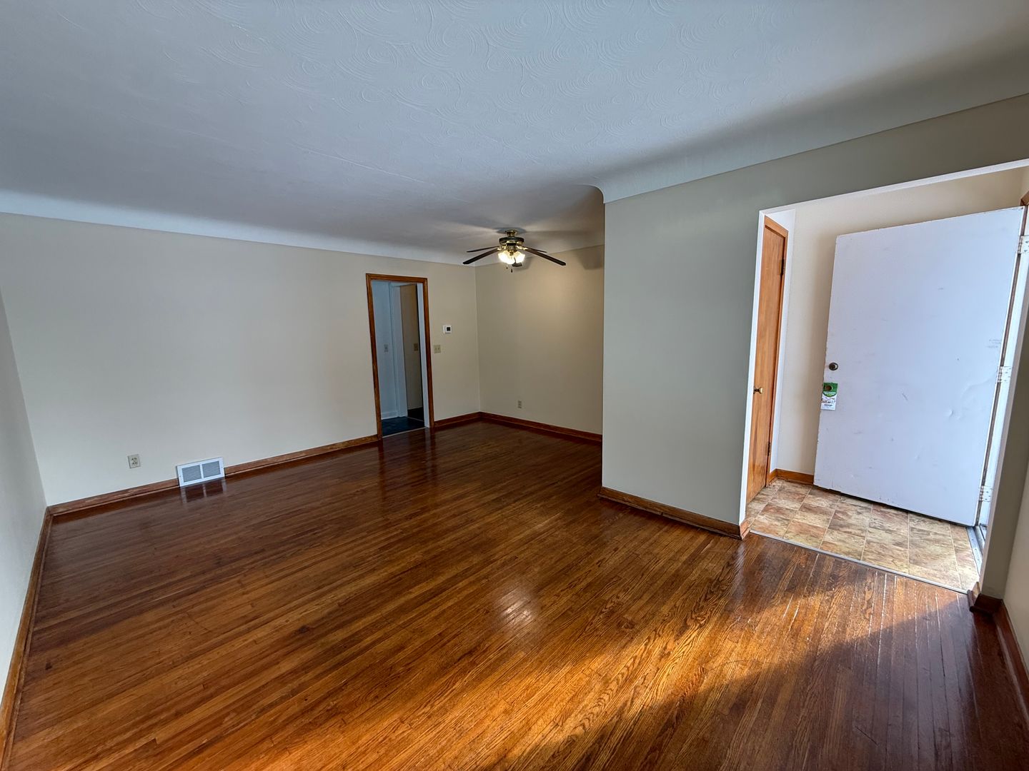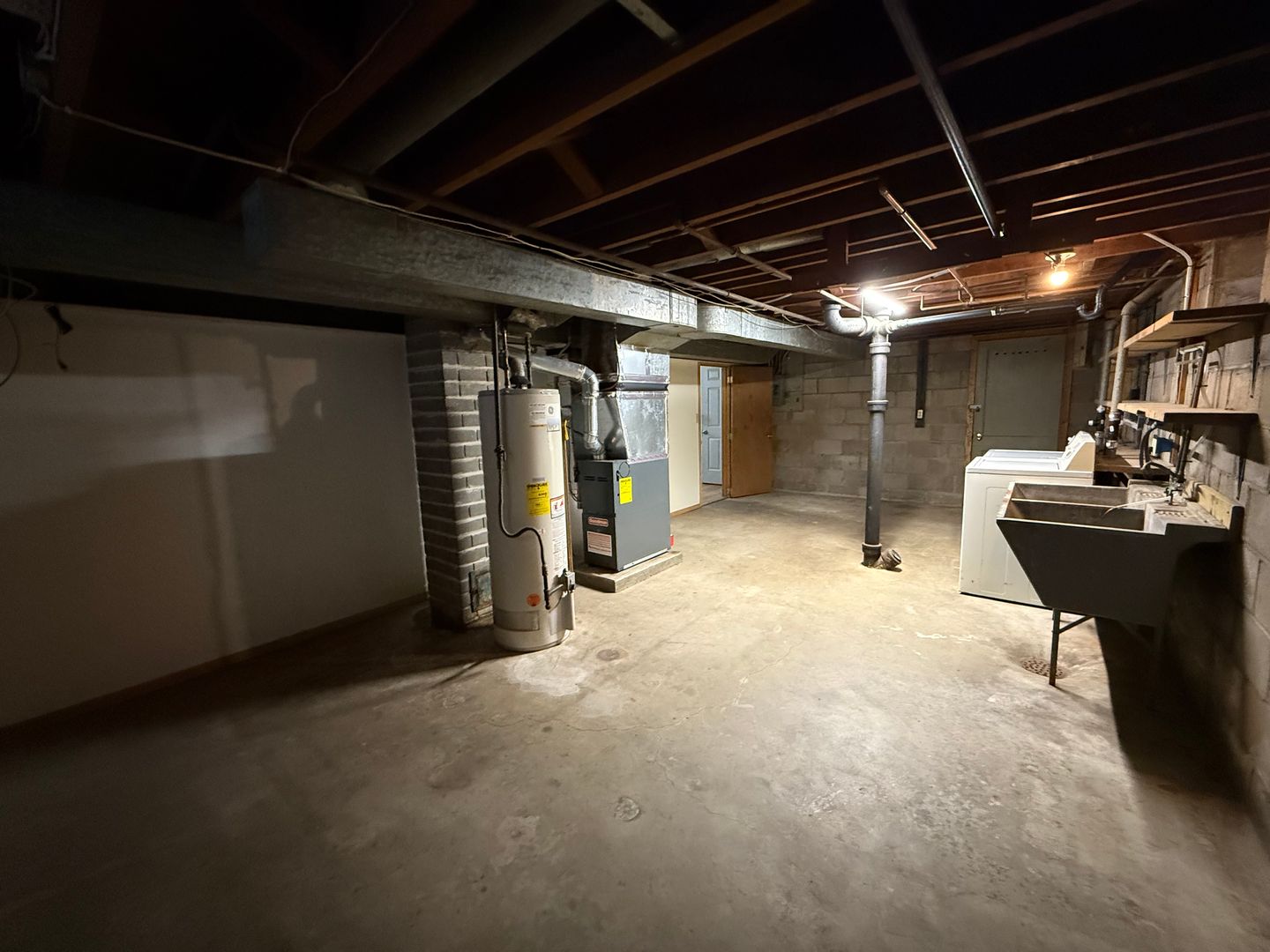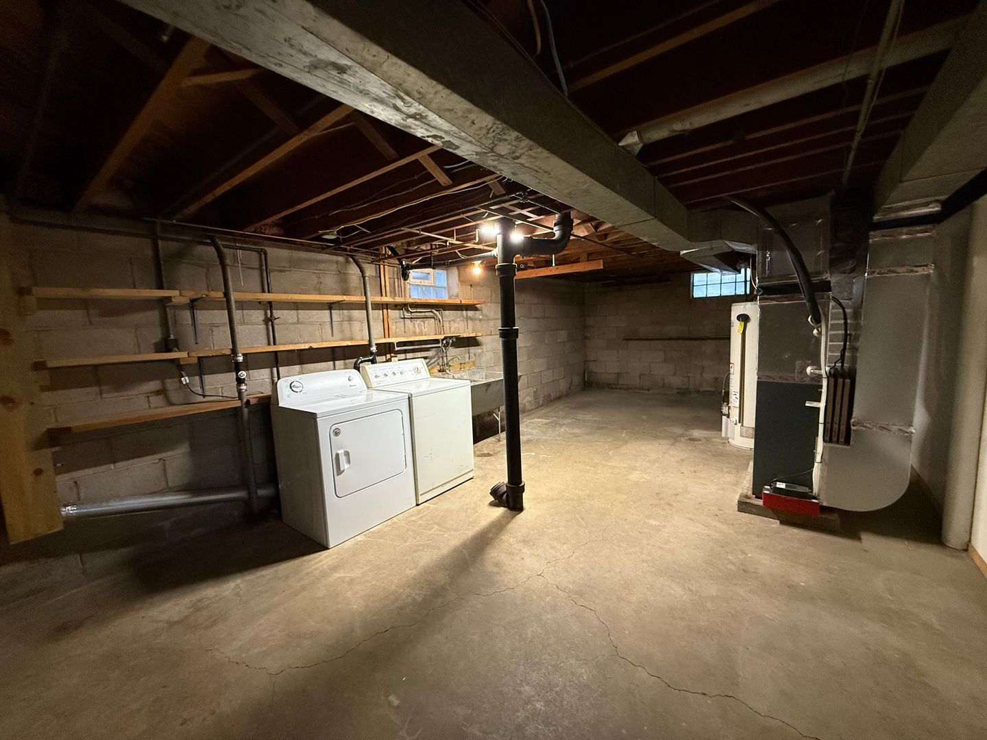 The home features in-unit laundry, basement storage, central heating and air conditioning, and ceiling fans throughout. A large driveway provides ample off-street parking, and a 1-car detached garage is available for an additional $50 per month. Outside, you’ll enjoy a large, beautiful yard that is fully maintained by the owner, offering a perfect outdoor space without the hassle.