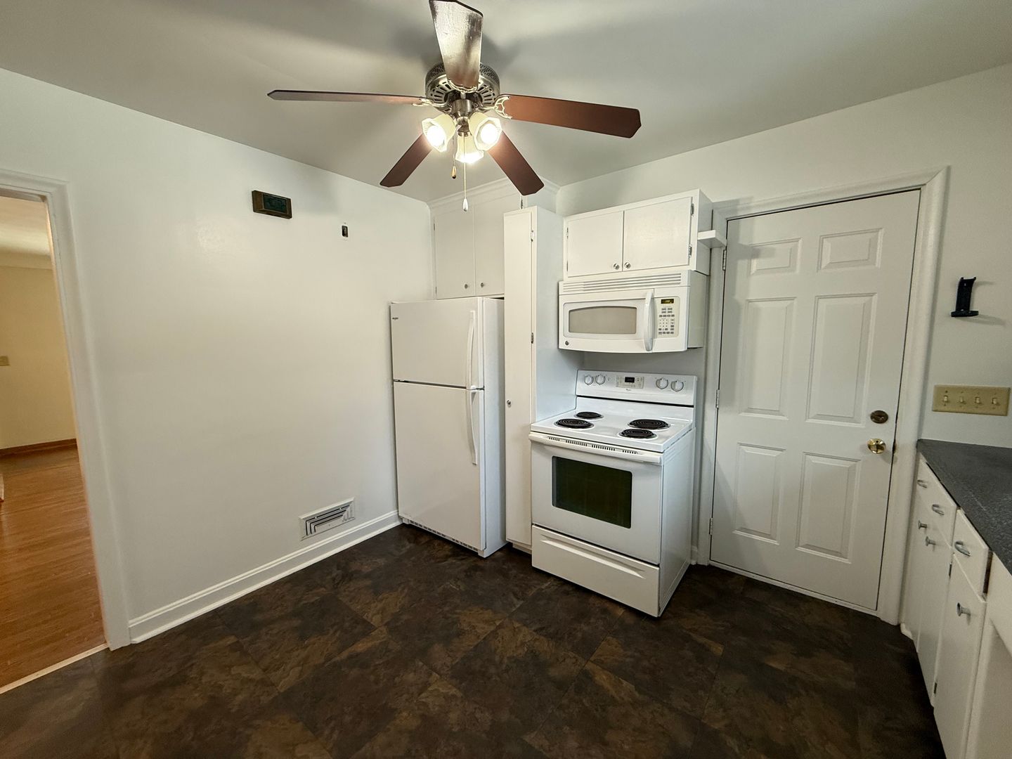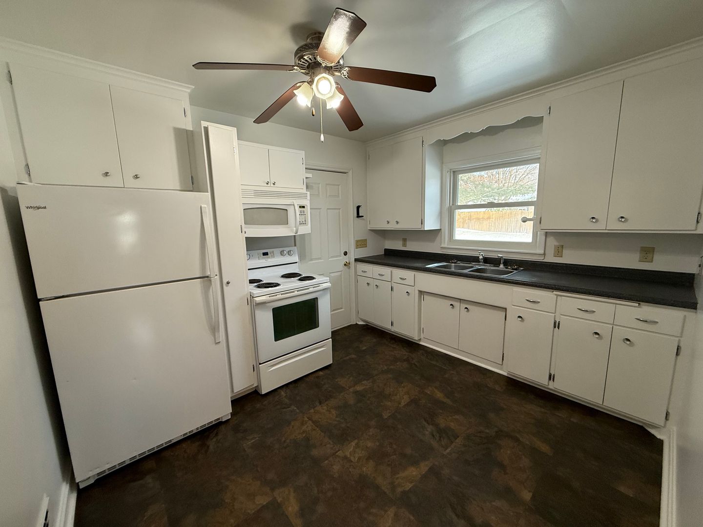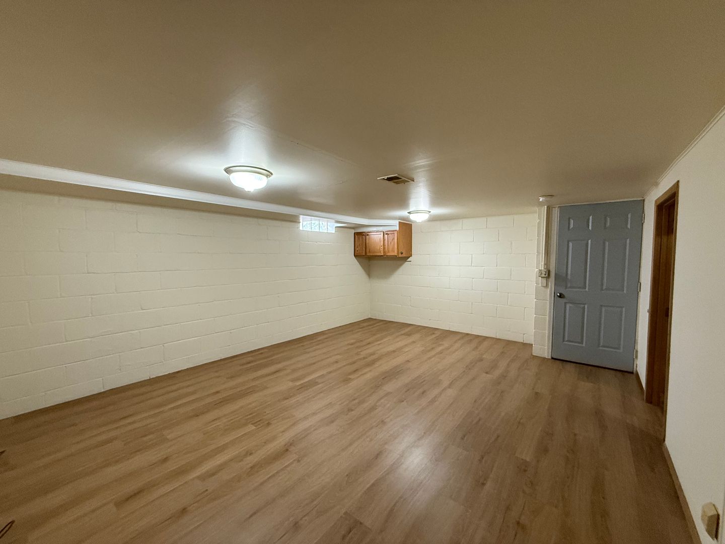 The home features in-unit laundry, basement storage, central heating and air conditioning, and ceiling fans throughout. A large driveway provides ample off-street parking, and a 1-car detached garage is available for an additional $50 per month. Outside, you’ll enjoy a large, beautiful yard that is fully maintained by the owner, offering a perfect outdoor space without the hassle.