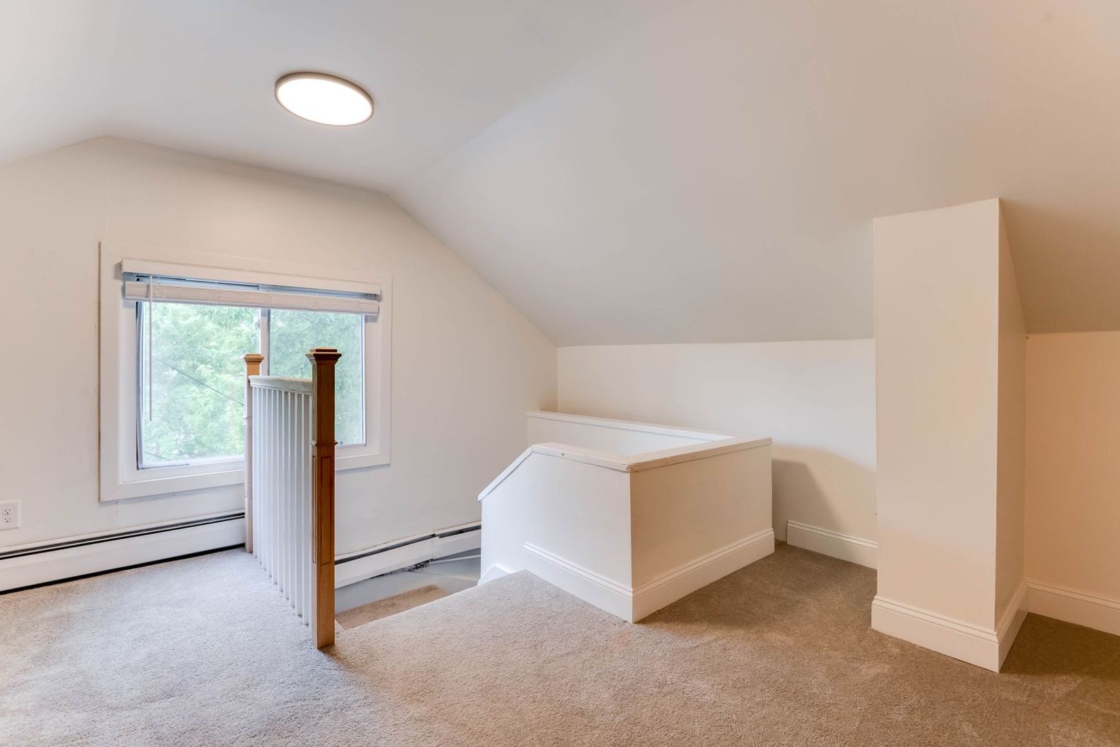 Great layout with two bedrooms and a bathroom on each level. Both bathrooms are tiled and updated. Refinished hardwood floors throughout with carpet in the finished upstairs for an upstairs recreation/living room and washer and dryer on the 2nd level.