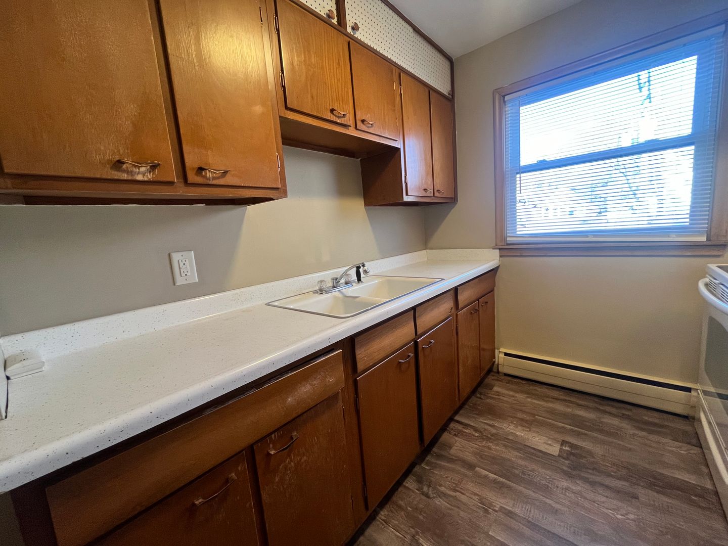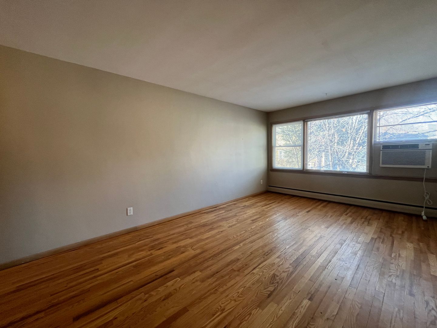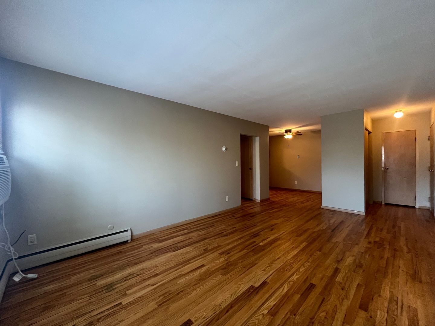 Large one bedroom unit located in Daytons Bluff neighborhood of Saint Paul. Hardwood floors in large living room, dining area, and bedroom. Galley style kitchen with electric stove and range. Plenty of closet space with wall AC included. Secure building with on site laundry and off street parking.