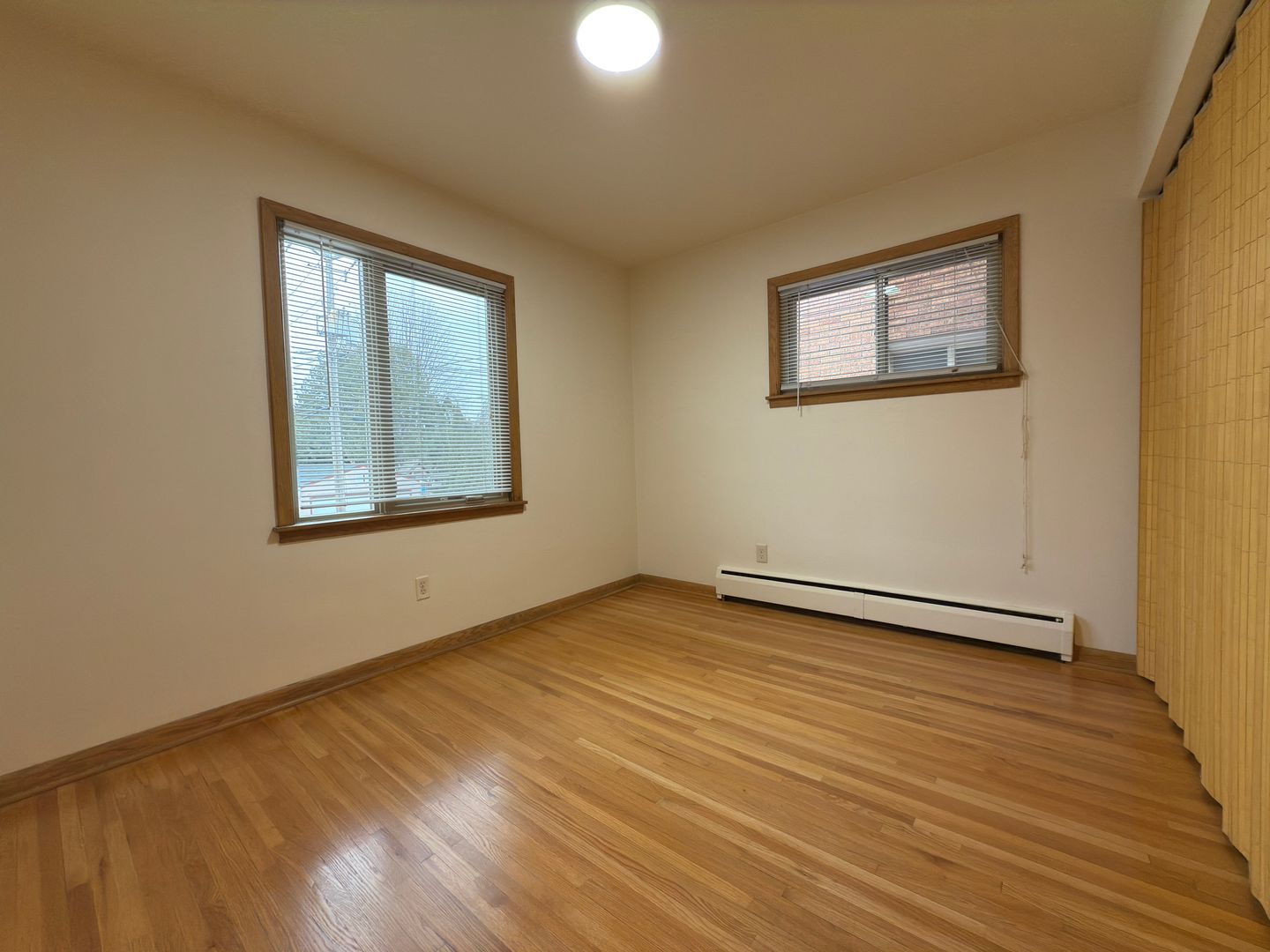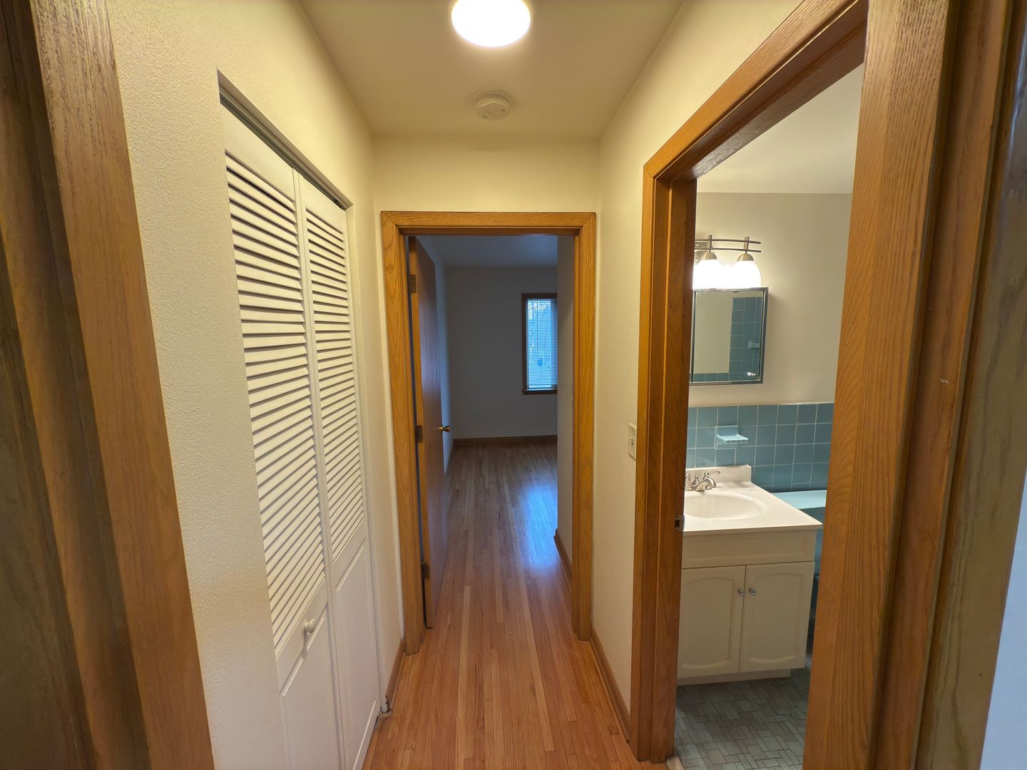 The bedroom features hardwood floors and a spacious closet, while the full bathroom brings a unique retro charm with beautifully maintained tile and fixtures.