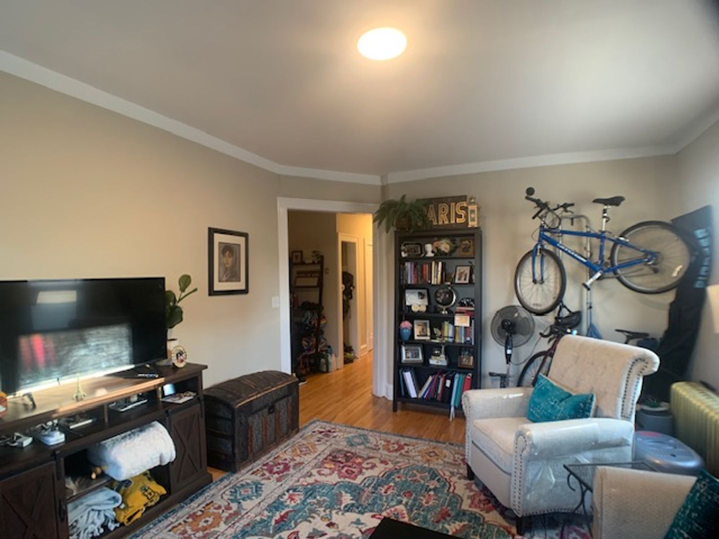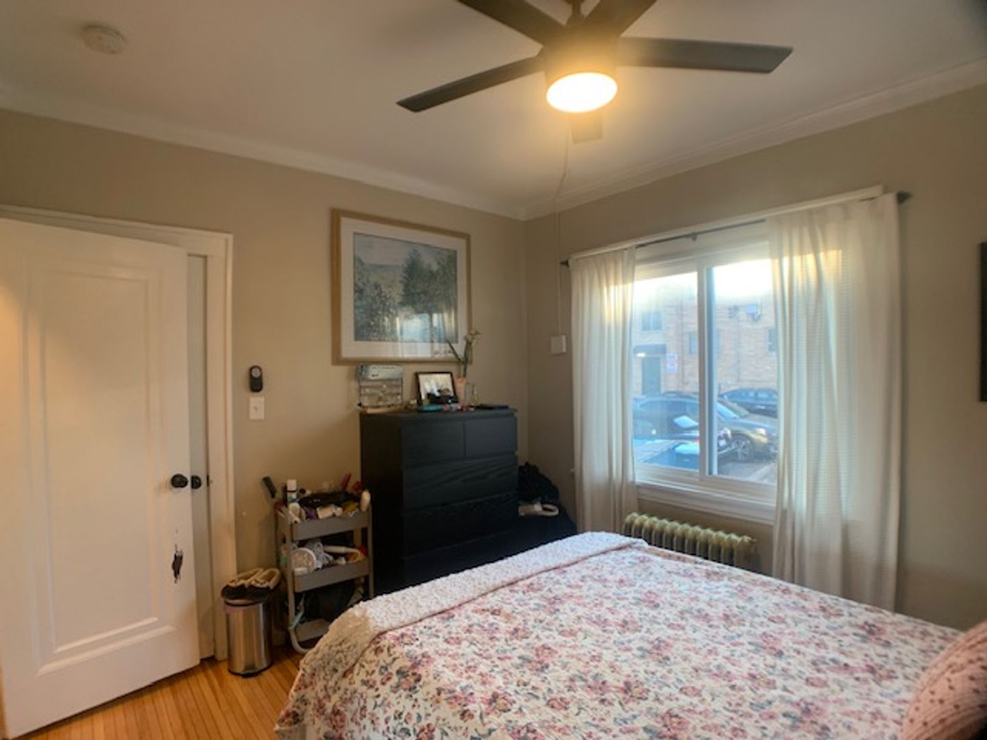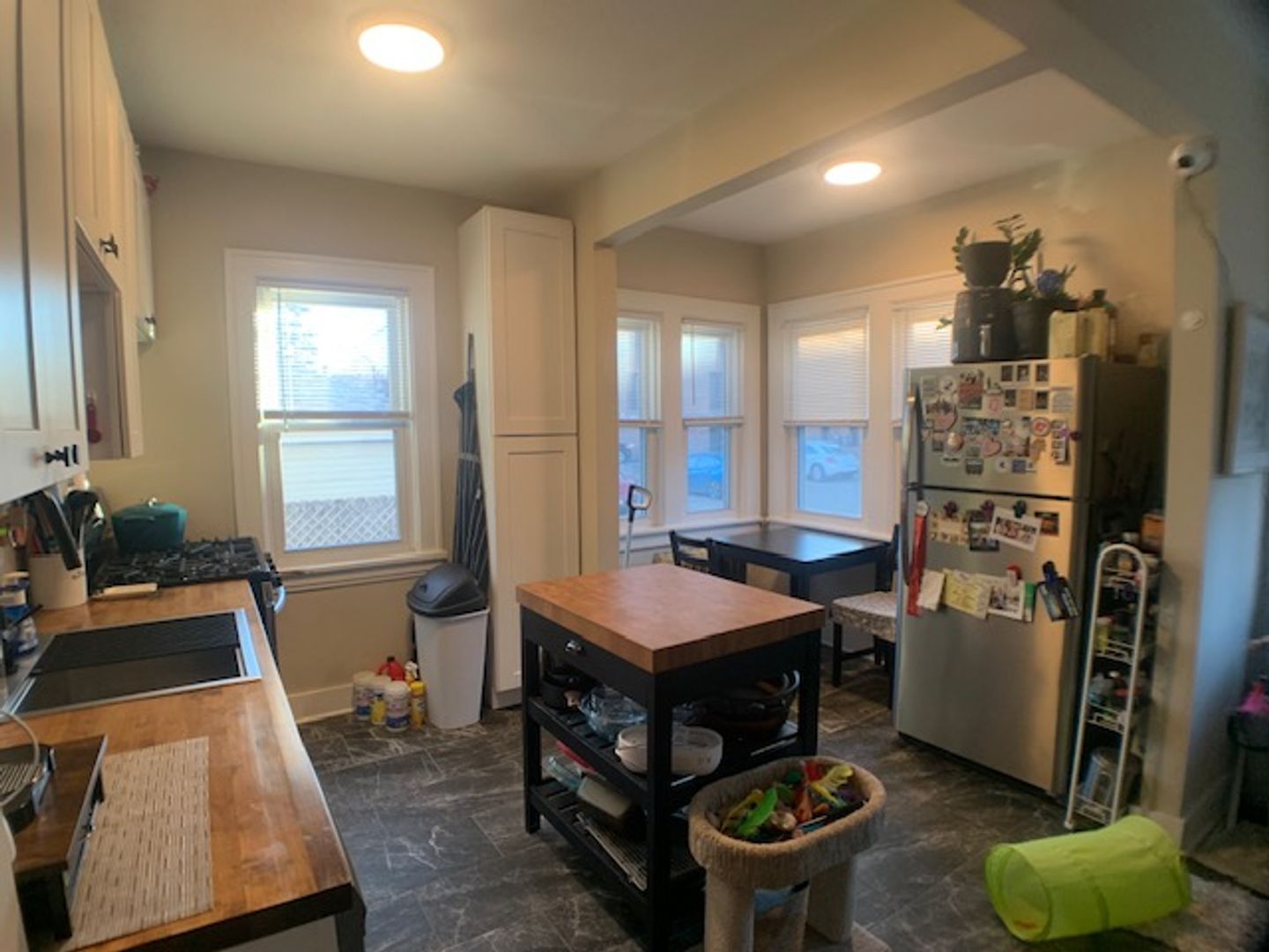 This unit has been completely updated and features white cabinetry in the kitchen, stainless steel appliances, and an adorable space off the kitchen for a table with natural light and open windows. Other features include hardwood floors, a spacious bedroom, and an updated full bath.