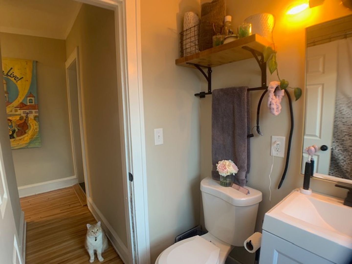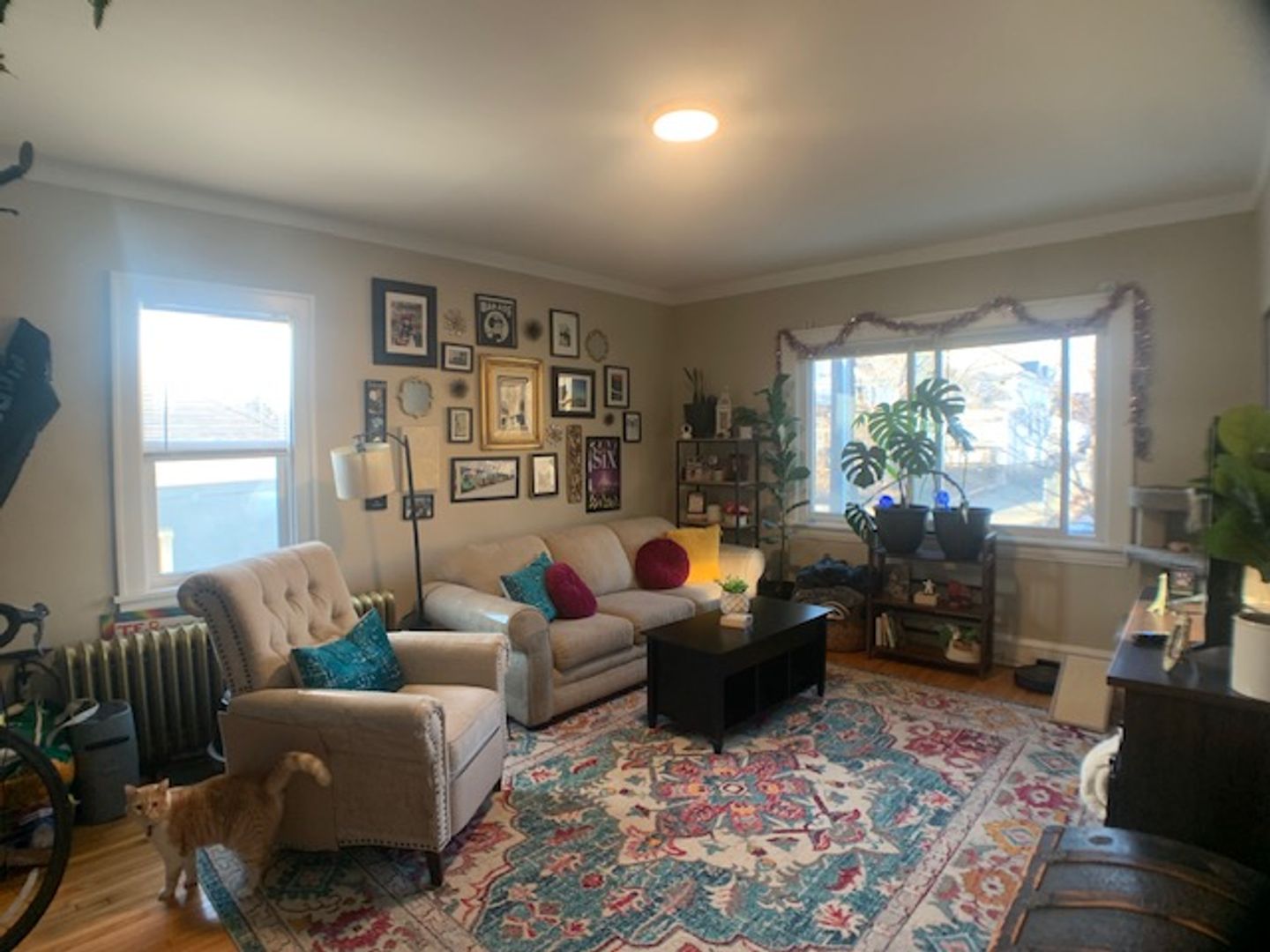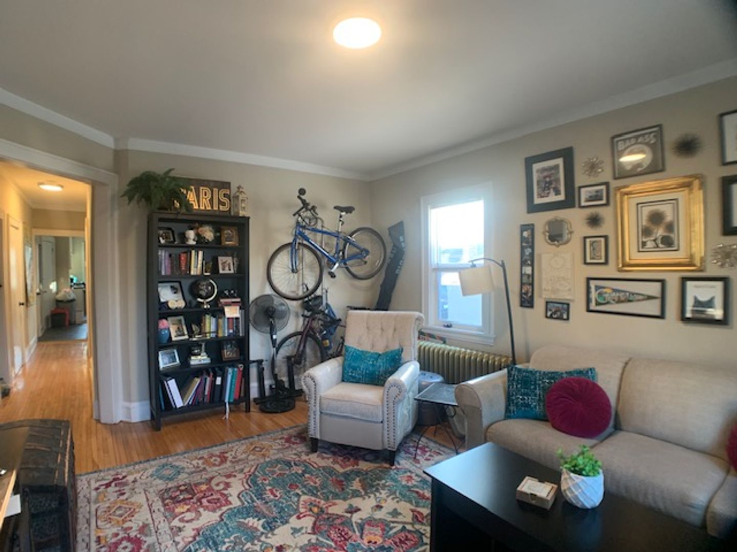 This unit has been completely updated and features white cabinetry in the kitchen, stainless steel appliances, and an adorable space off the kitchen for a table with natural light and open windows. Other features include hardwood floors, a spacious bedroom, and an updated full bath.