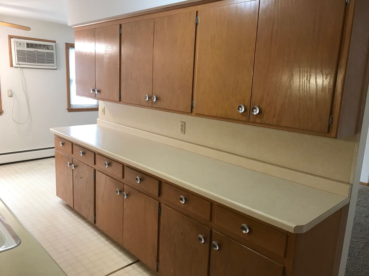 Large 1 bedrooms have a galley style kitchen with tons of cabinet and and countertop space. There is a dining room area off kitchen fit for a small table, a large living room, wall A/C and a bedroom and bathroom to complete unit.