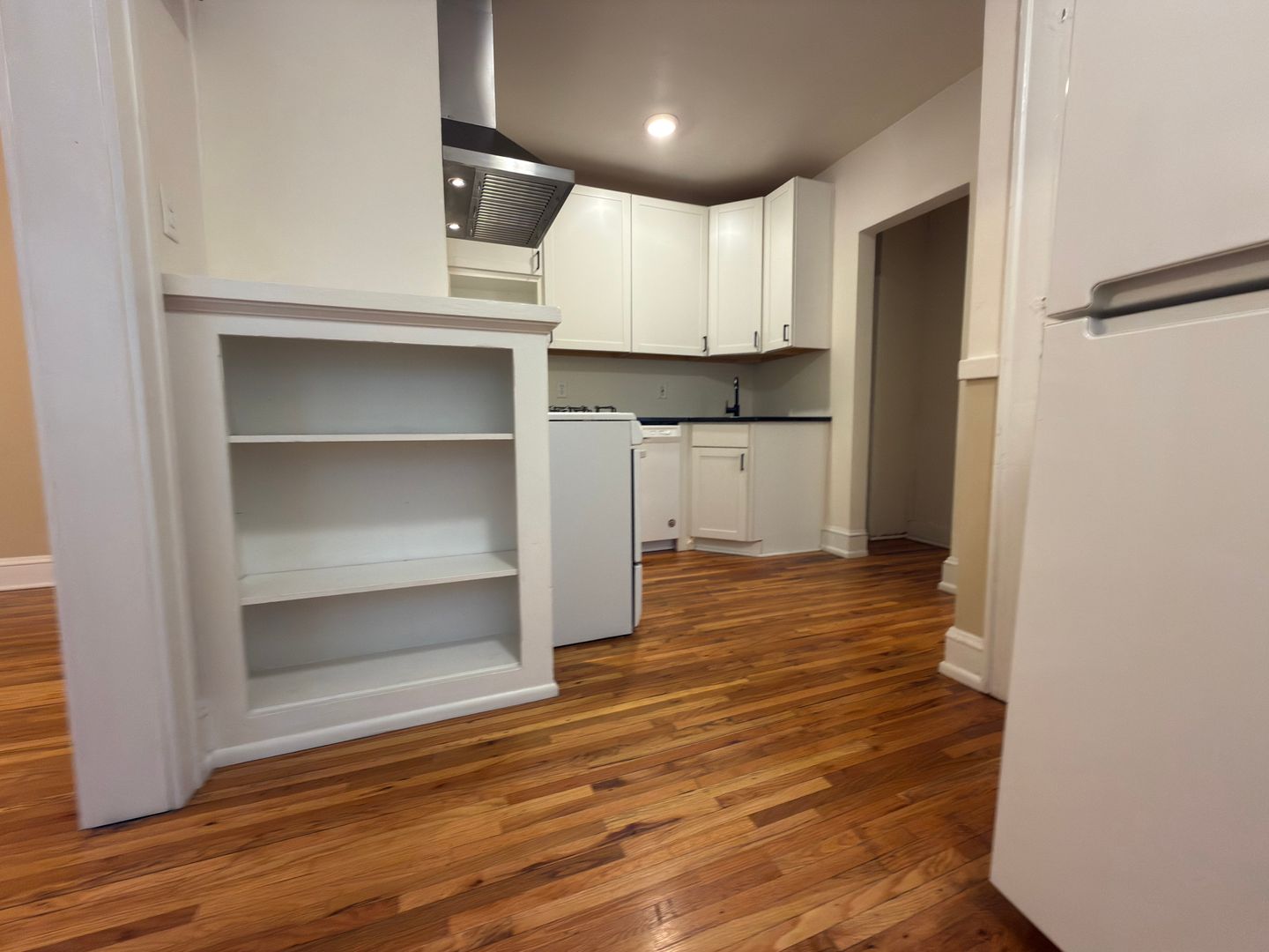 This stylish studio apartment sits on the garden level of a well-maintained building right off Fairview, just steps from the countless eateries and shops along University Ave. The open floor plan features hardwood floors, large windows with great natural light, and ample storage space including a walk-in shower in the updated bath. The modern kitchen boasts tall white cabinetry, sleek countertops, and elegant antique gold hardware for a touch of luxury.