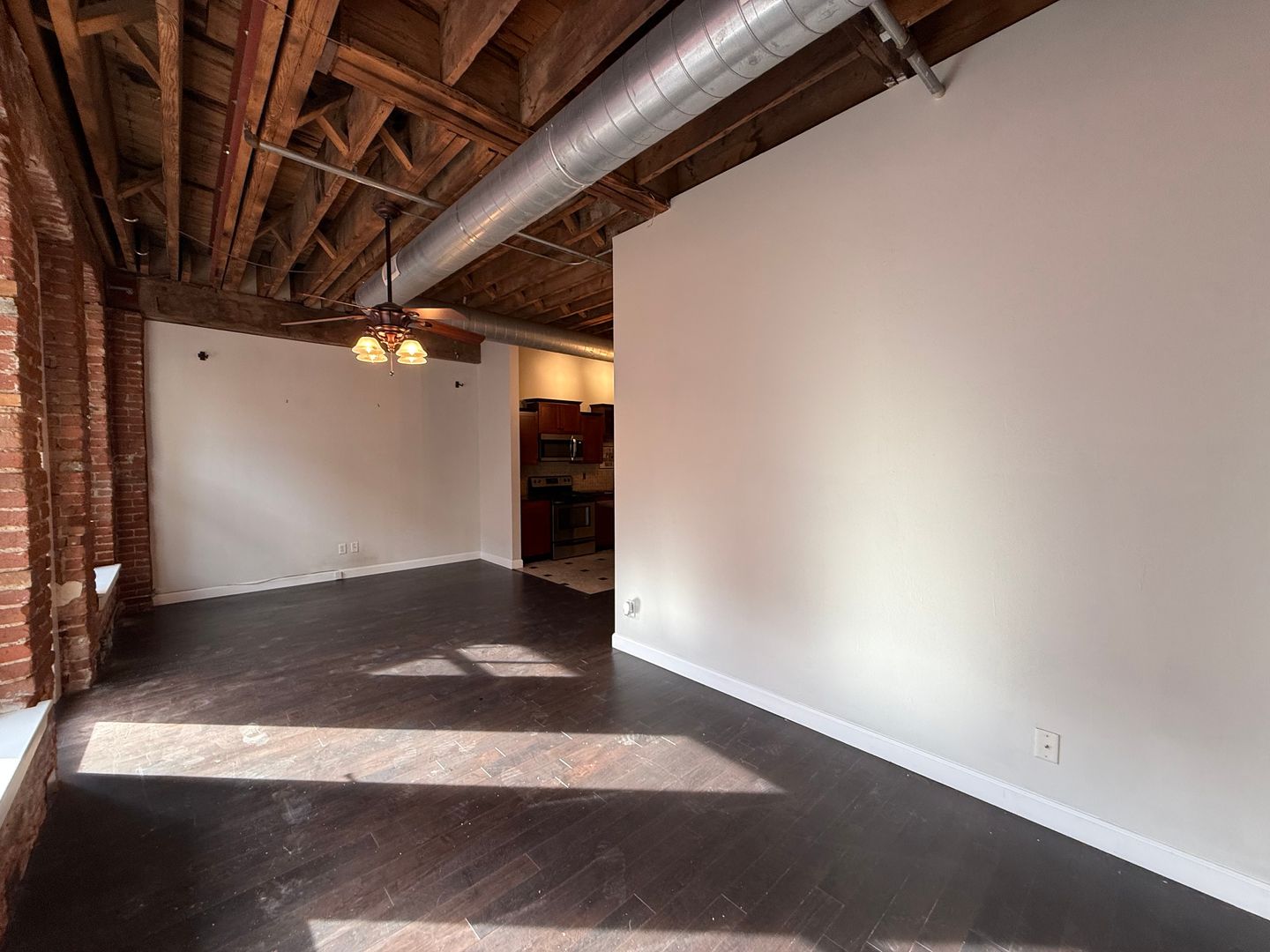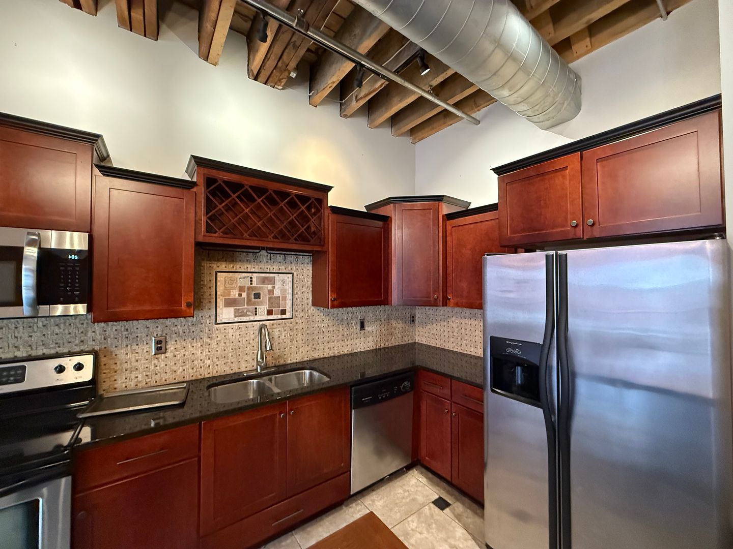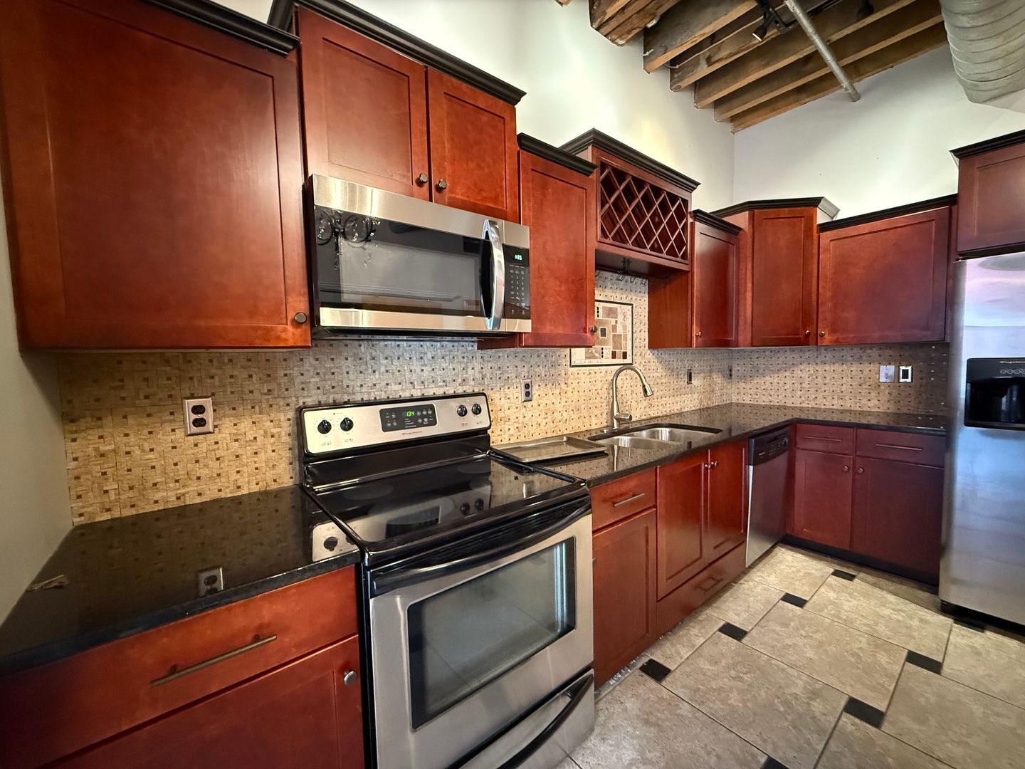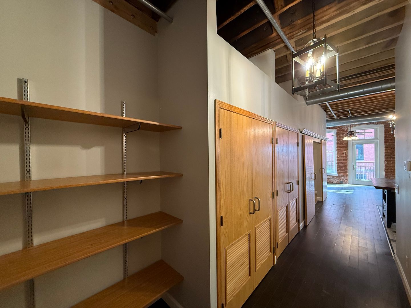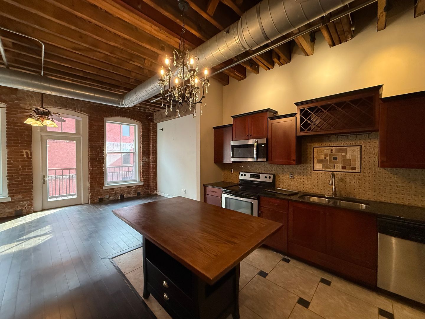 This spacious 3rd-floor Downtown St. Paul apartment offers an impressive open layout with soaring ceilings and tall windows that fill the home with natural light. The large living room flows into an upgraded chef-style kitchen featuring rich mahogany cabinets, a full tile backsplash, stainless steel appliances, a built-in wine rack, and a generous center island that provides excellent workspace and seating. The apartment feels wide, bright, and inviting with hardwood floors throughout, barn doors, built-in shelving, and double closets for ample storage. The tiled bathroom is modern and clean, and the in-unit washer and dryer add everyday convenience. Step outside onto your private balcony or enjoy easy access via the building elevator. This home blends style, space, and function in one of the most walkable locations in Downtown St. Paul, surrounded by restaurants, parks, entertainment, and transit.