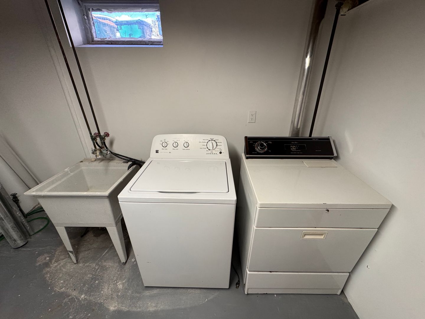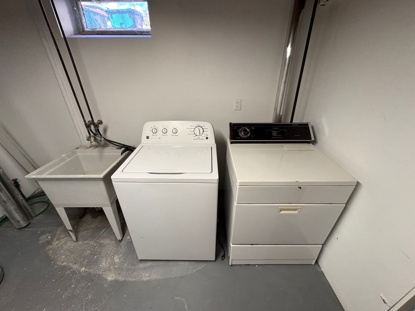 The home is equipped with a washer, dryer, dishwasher, and central air for your convenience. The property also features a very large driveway and a fully fenced backyard, providing ample space for outdoor activities.