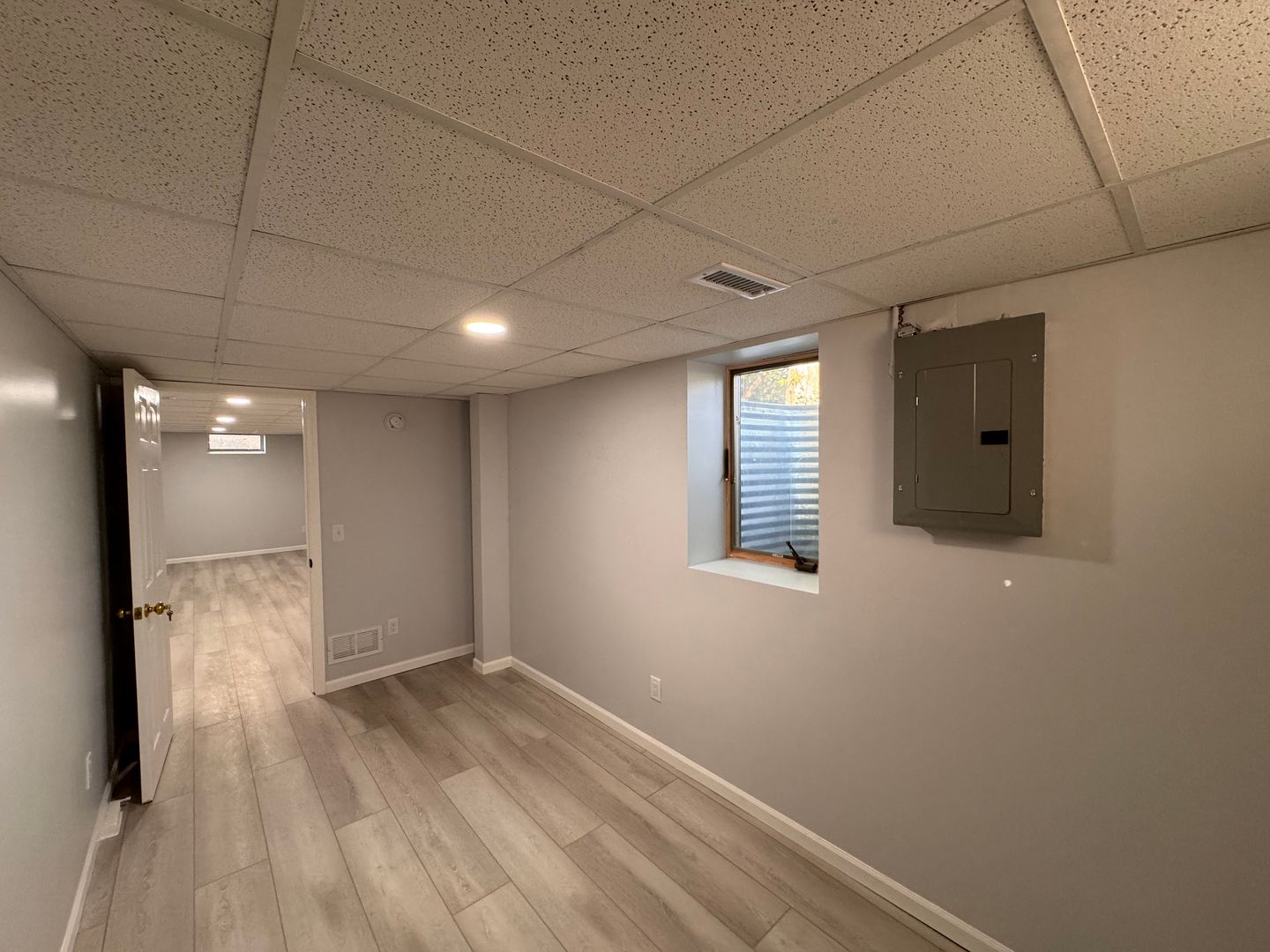 The fully renovated lower level offers a cozy family room, two additional bedrooms, and a brand new bathroom.