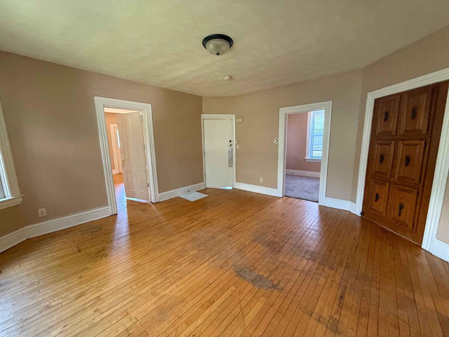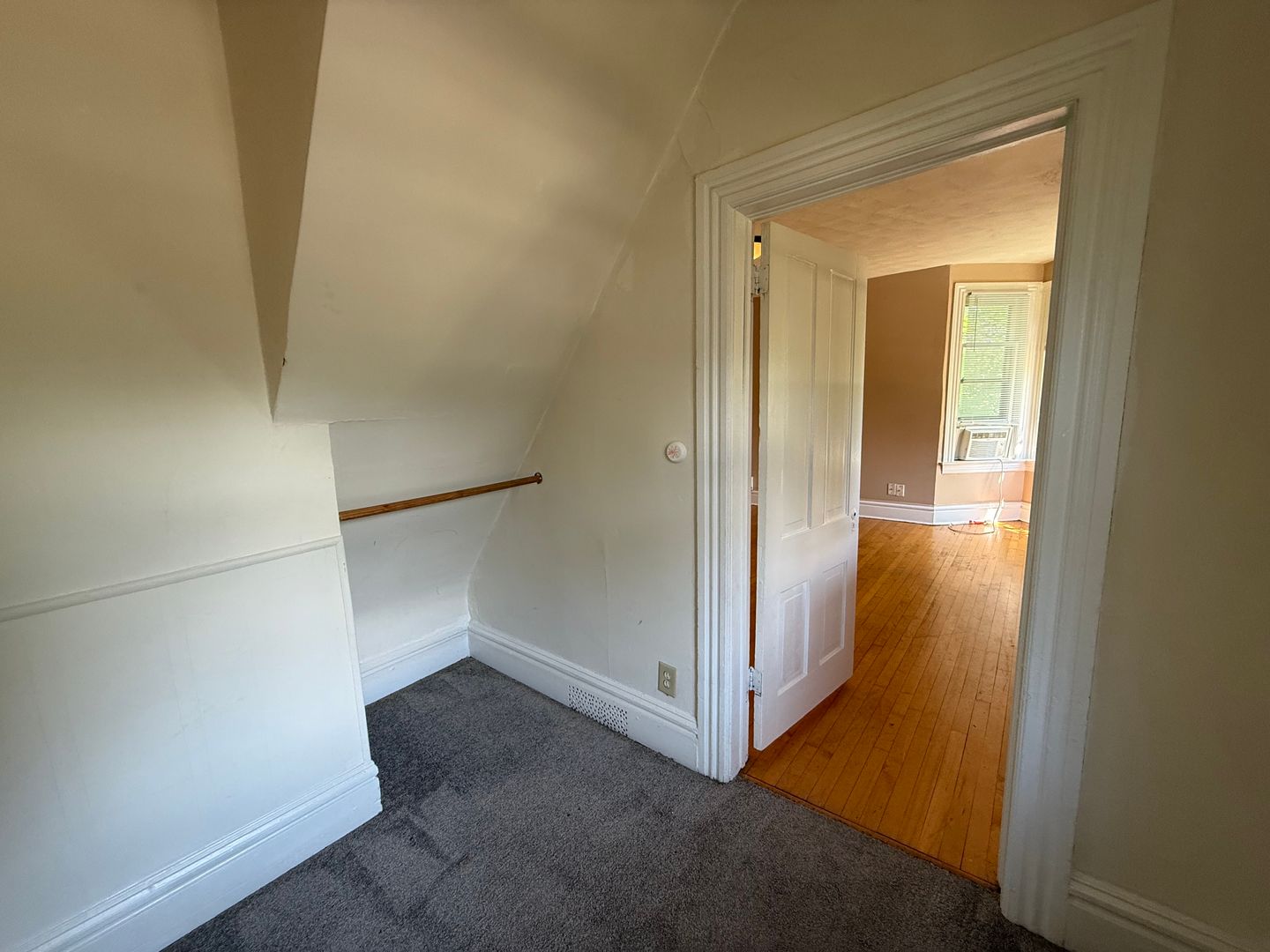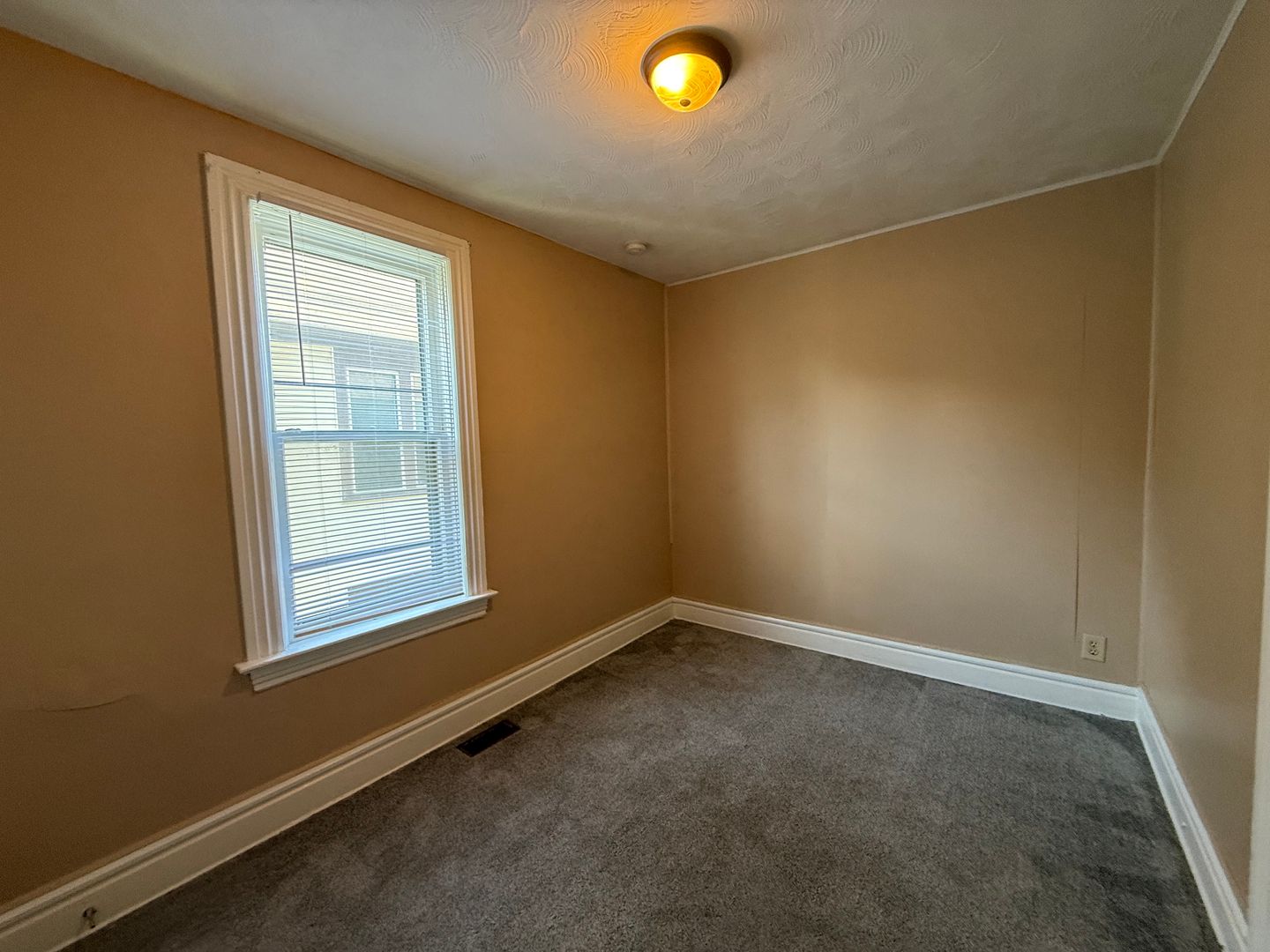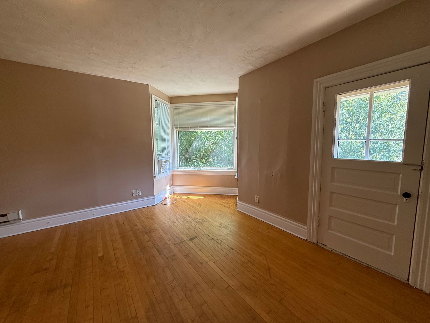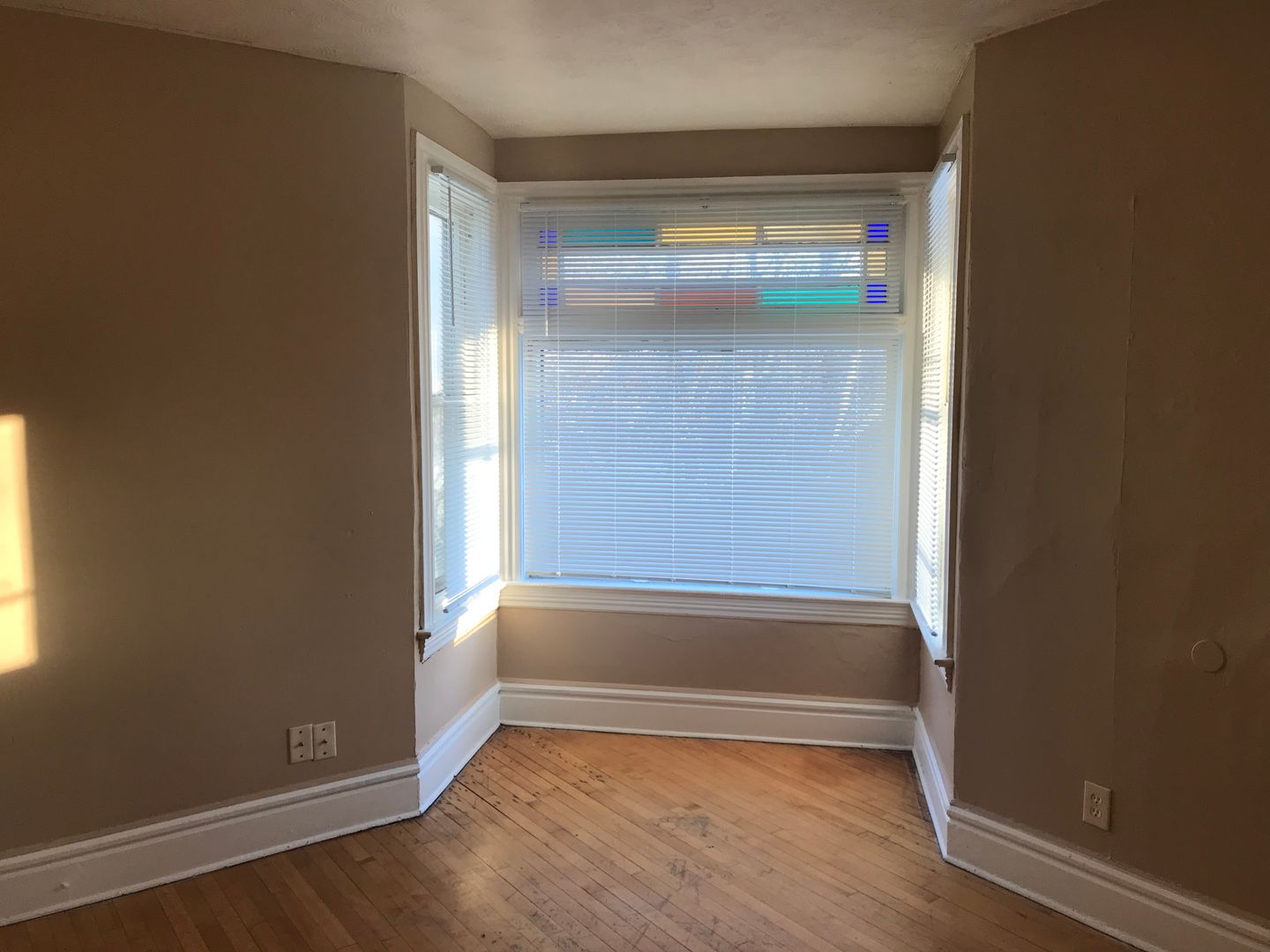 Available NOW!! Upper-level 2-bedroom, 1-bath duplex unit available in St. Paul. This home has been refreshed with new carpet, fresh paint, and features classic hardwood floors in the main living areas. The standout feature is the oversized main bedroom, which offers two closets—one standard and one large walk-in. The walk-in closet is spacious enough to be used as a home office, studio, or creative space, making it an ideal setup for remote work or anyone who needs extra flexibility. A painted window adds charm and character while bringing in natural light. The second bedroom is well-sized and works perfectly as a guest room or additional office. The living room is large and open, providing plenty of room for both relaxing and entertaining. Off-street parking is located in the back, and a garage space is available for added convenience.
