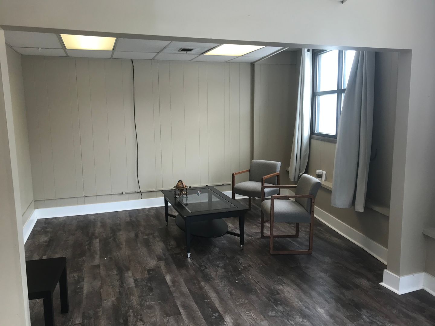 There are 4 private office spaces as well as another large room that can be used for an office or conference room. The space also includes a break room area with a kitchenette that offers privacy for employees. The basement includes a large bathroom as well as another private office space and more room for storage.