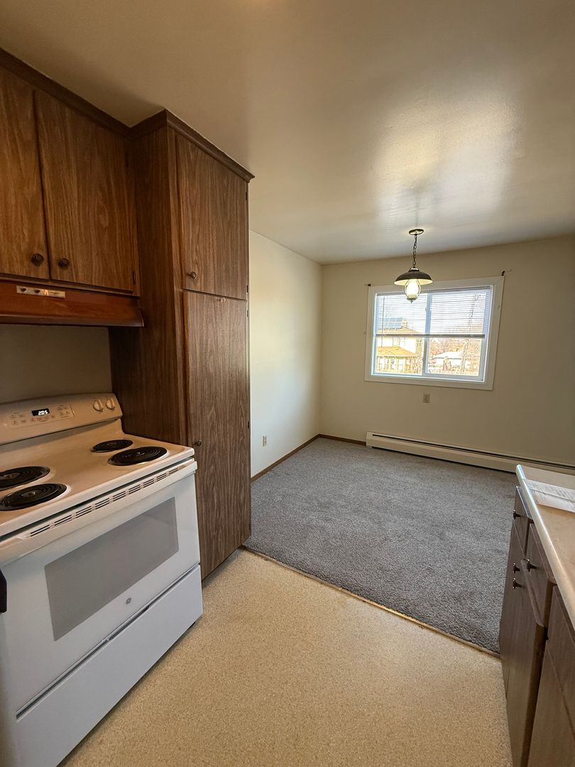 Landlord pays heat, electric, water/sewer, and handles the lawn care and snow removal.