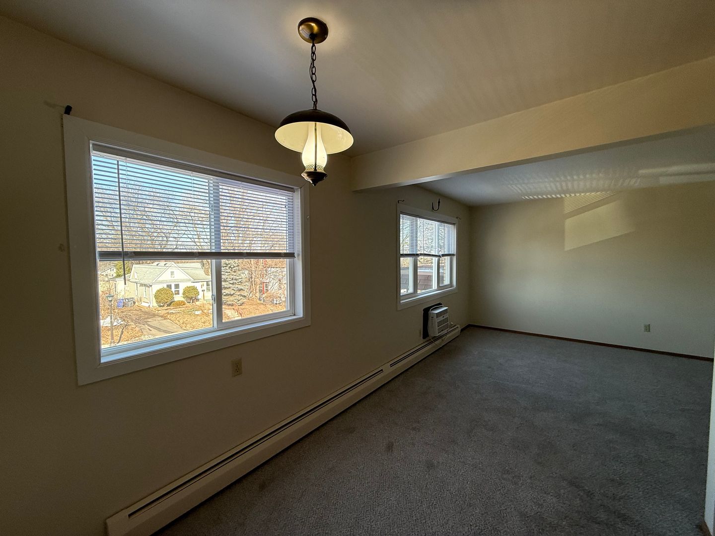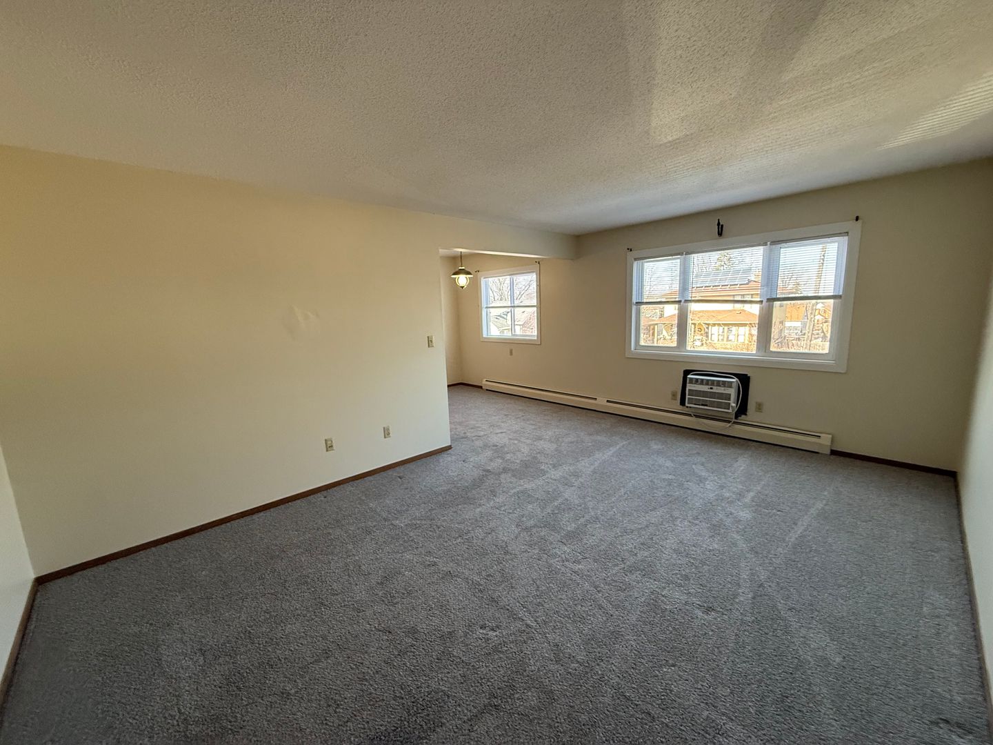 The apartment includes a wall AC unit for added comfort and plenty of windows that provide good natural light throughout the space. The layout makes it easy to furnish both the living and dining areas without feeling cramped.